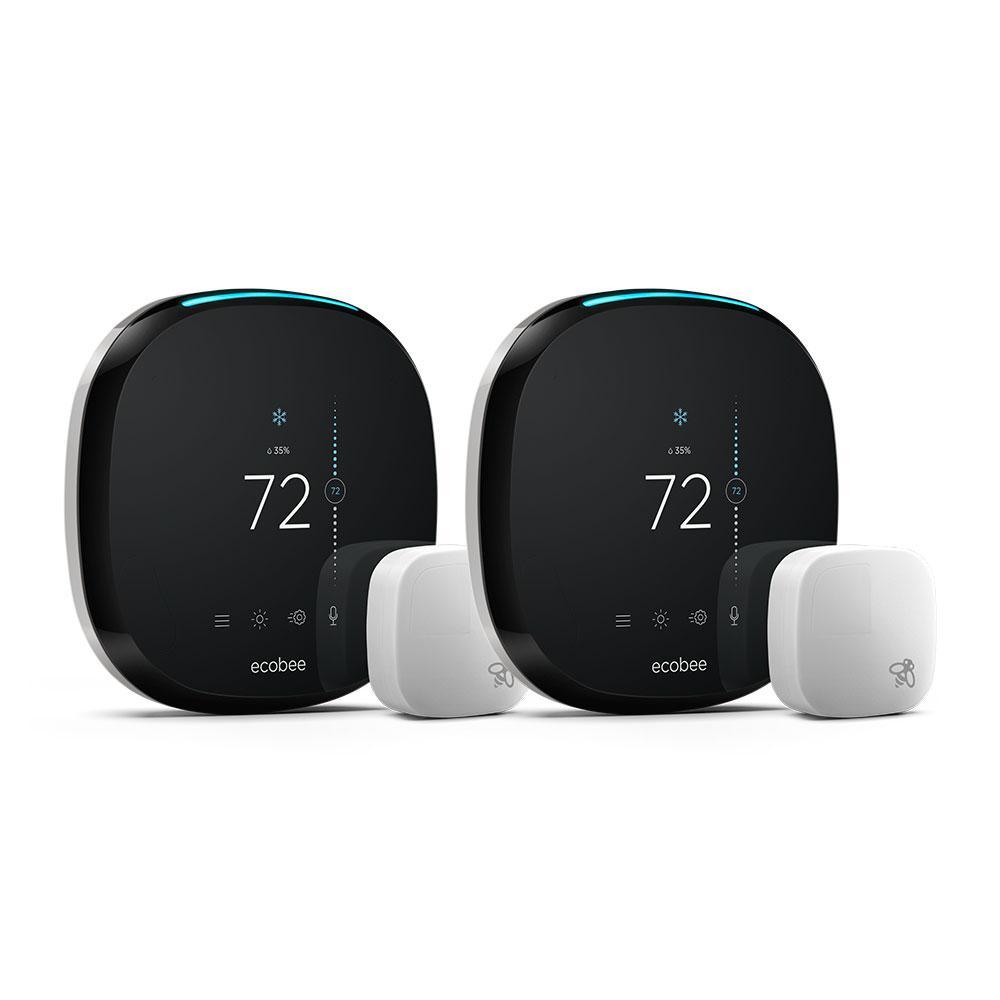 With built-in Amazon Alexa Voice service, the ecobee4 can listen to your voice commands and respond. Have it set a timer, read you the news, adjust the temperature and more, even from a distance thanks to far-field voice recognition. It also works well with other Alexa devices by supporting ESP so that only the device closest to you responds to your commands. In addition, ecobee4 comes with a room sensor that helps manage hot or cold spots in your home to deliver the preferred temperature to the rooms that matter most. Ensuring comfort when you're home and savings when you're not, ecobee4 pairs with up to 32 sensors and works with Amazon Alexa, Google Assistant, Apple HomeKit, Samsung SmartThings, Wink and IFTTT. Even better, it comes backed by a 3-year limited warranty for peace of mind. This bundle contains 2 x ecobee4 Smart Thermostats and 2 x Room Sensors.