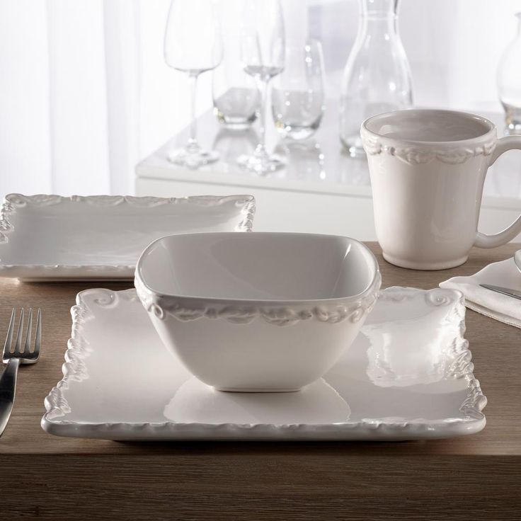 16-Piece Solid White Stone Dinnerware Set (Service for 4)
