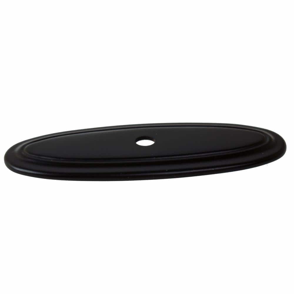 Slim, oblong cabinet knob backplates in a durable matte black finish elevate and protect your cabinetry. Made from zinc alloy for long-lasting wear, each plate arrives ready to install and pairs with most standard knobs.