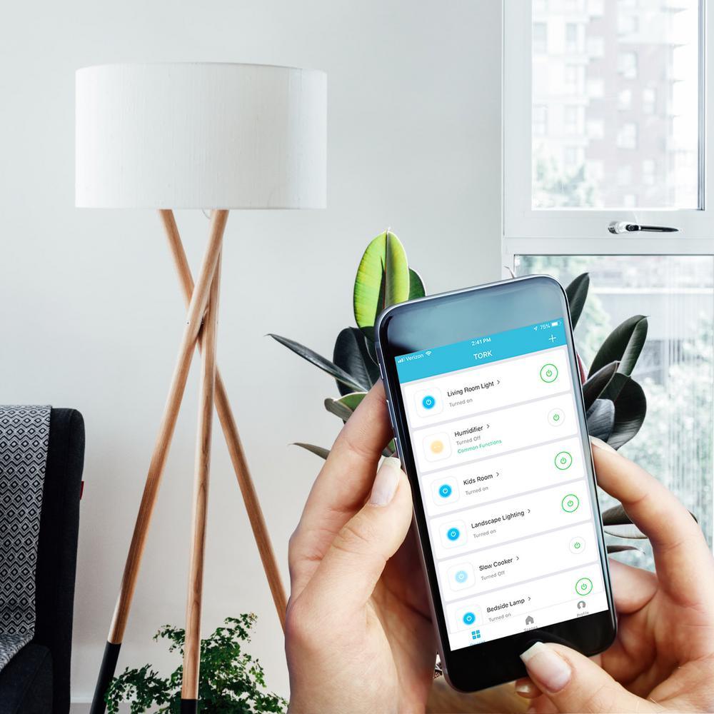 Transform your home into a smart home with the WFIP1 Smart Plug. The plug allows you to control your lights, coffee maker, slow cooker, iron, curling iron or other small appliances/devices from anywhere in the world with your smartphone (Apple iOS or Android) or tablet with the free, user-friendly app. The plug allows you to conveniently set schedules and control multiple scenes to save energy and improve security while home or away. A Random Mode automatically turns a lamp on and off randomly while you are away. For added convenience, you can use your voice to control the Smart Plug when paired with Amazon Alexa or Google Assistant. The 3-prong Smart Plug simply installs into a standard electrical outlet/receptacle and connects to your home Wi-Fi (2.4 GHz Wi-Fi network). The compact design keeps your second outlet free. With today’s busy lifestyle, get real time status updates when a device is on, allowing you to turn it off. The plug is available in white. All of TORK smart devices including smart switch, smart socket and other smart plugs give you the peace of mind that you’ll never leave your lighting or devices running.