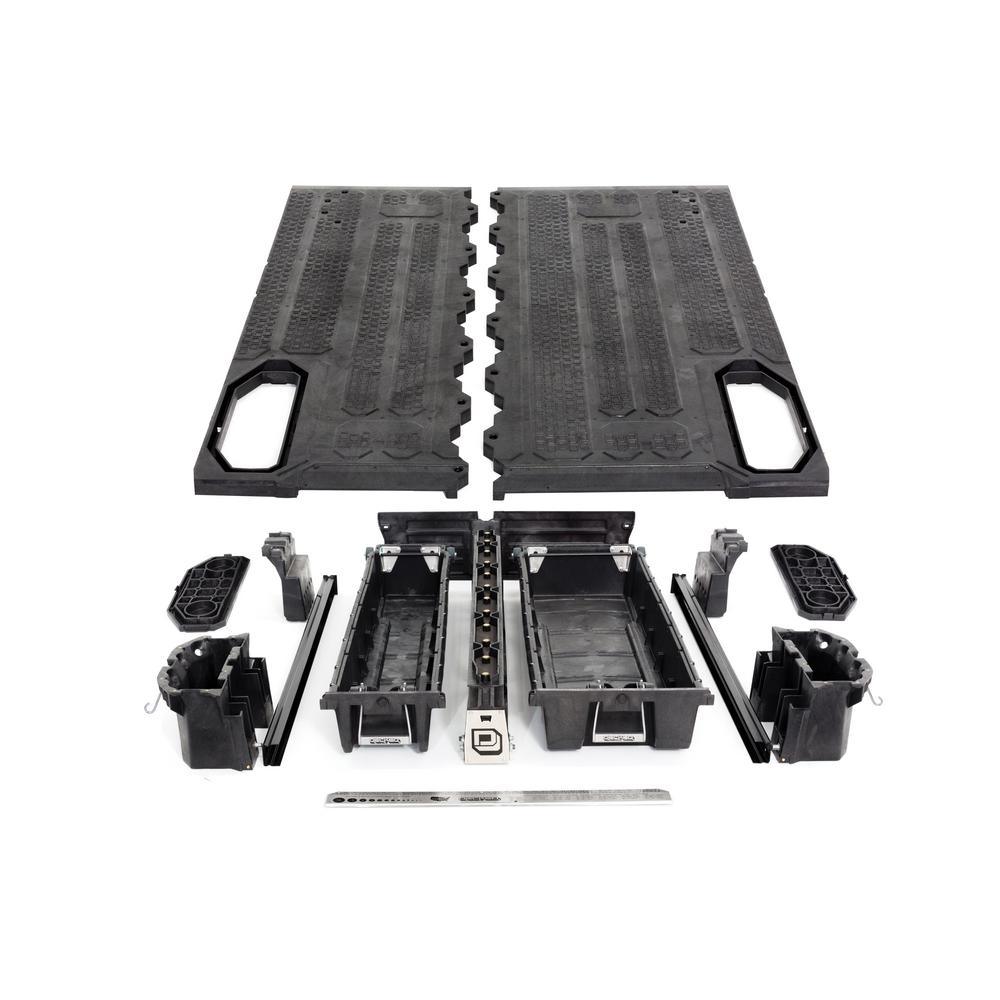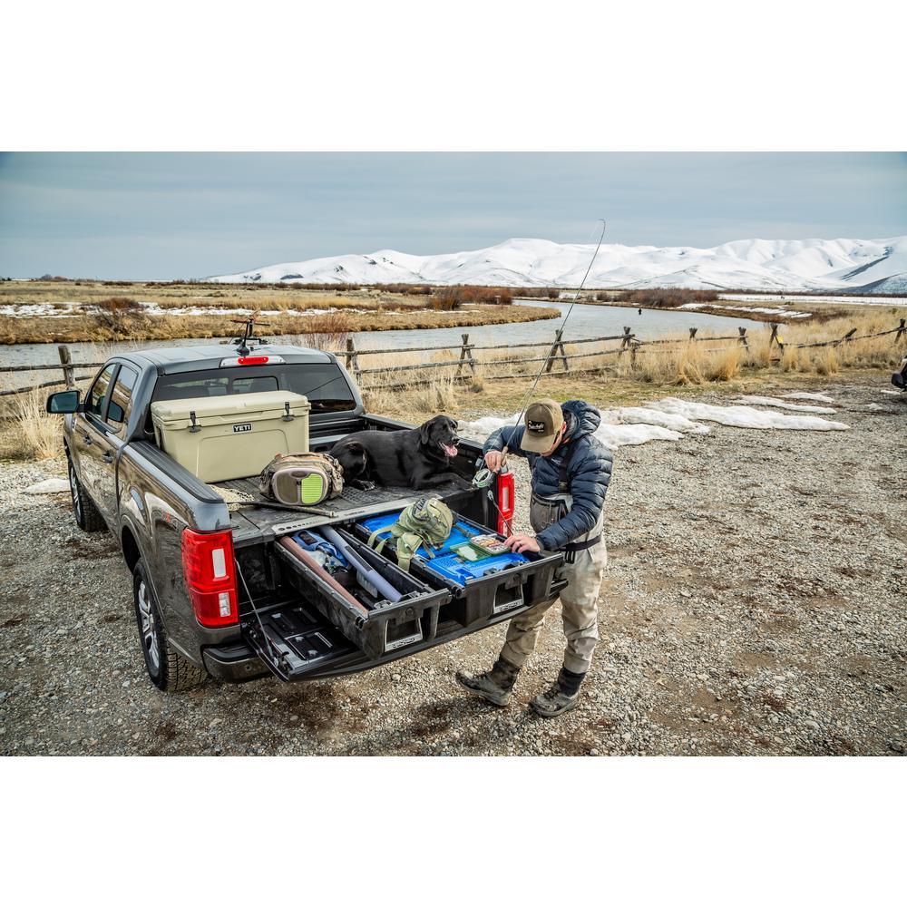 DECKED revolutionized Pickup Truck Bed Storage with a low-profile truck bed tool box system that is compatible with Ford, Dodge RAM, Chevy, GMC, Nissan and Toyota midsize trucks. 2 full bed-length drawers offer dry, secure storage with ergonomic access for tools, gear, guns, fishing rods and other items that slide out at waist height, while still allowing the owner full use of their truck or van bed. DECKED has a 2,000 lb. payload on the deck and 200 lbs. per drawer load capacity. Covered by 3-year warranty against product defects or failure due to workmanship. Further organization and customization is possible with optional nesting storage boxes, drawer dividers, tie downs and locks. DECKED Storage Systems are easy to install or remove, weatherproof, secure, and ergonomic. With a low-profile design the DECKED Storage System leaves plenty of room for further upfitting. DECKED Truck Storage Systems are perfect for small businesses like painters, carpenters, plumbers and handyman services. DECKED Storage Systems were also designed with the outdoors enthusiast in mind, allowing you to carry fishing, hunting or any kind of sports gear you can imagine. Note: drawers are not water or airtight, some fine particulate matter such as dust and water vapor may enter. Assembly and installation time approximately 2 hours. Removal/reinstall time approximately 15-20 minutes.