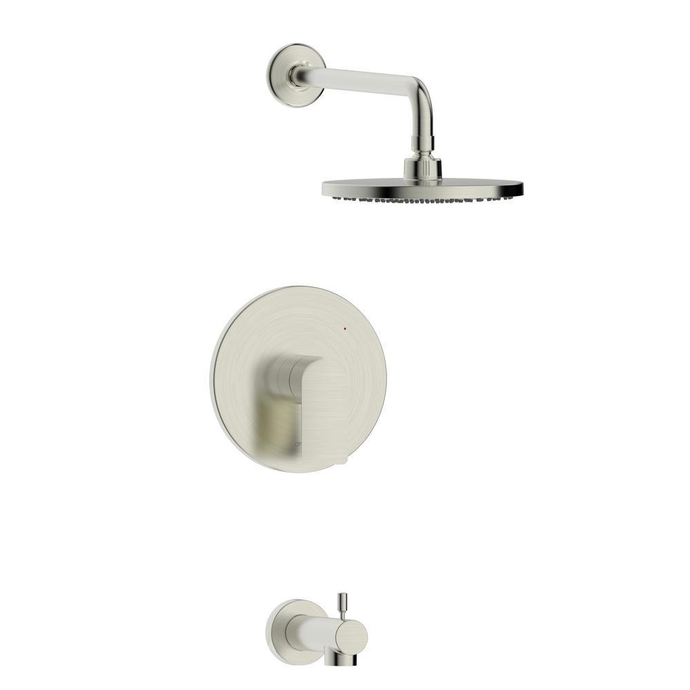 Italia Faucets is proud to present the new Palais Royal Series named after the famous Paris Metro Station. This complete tub/shower set comes with everything pictured including, 1) 8 in. plastic rain shower head with self-cleaning tips, 2) 14 in. L shower arm with wall flange, 3) modern tub spout with built-in diverter, 4) 7.25 in. Dia escutcheon plate which is super sleak, 5) heavy-duty control handle, 6) pressure balance rough-in valve with integral stops. This contemporary European style set is perfect for minimalists who crave maximum style yet clean modern lines. Enjoy for years to come.