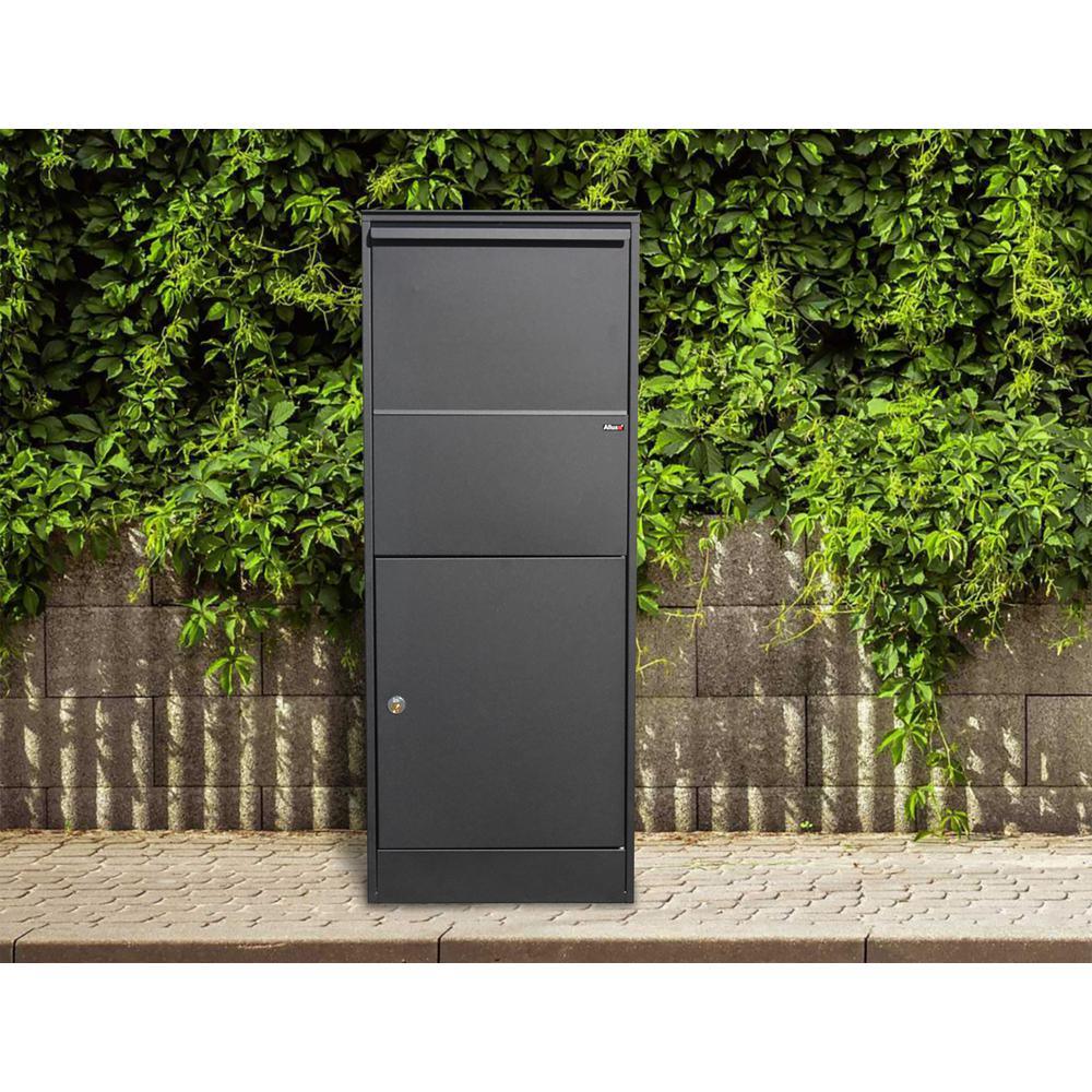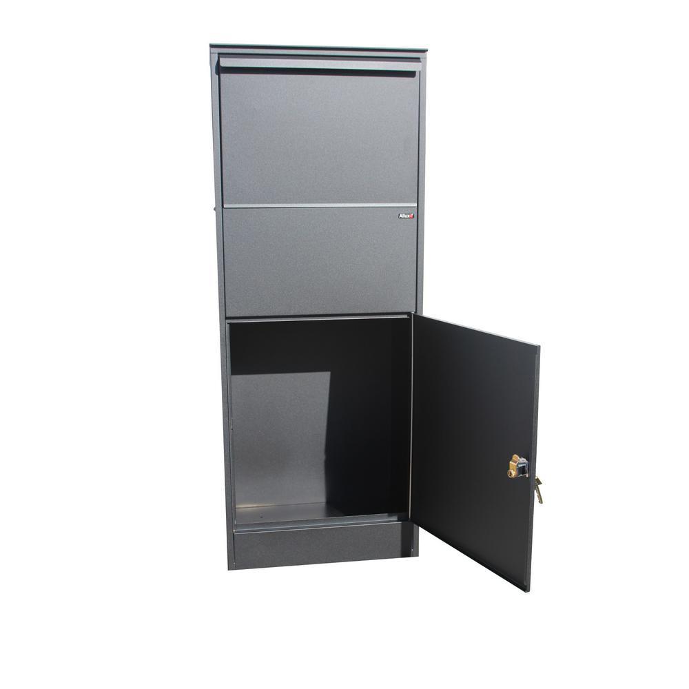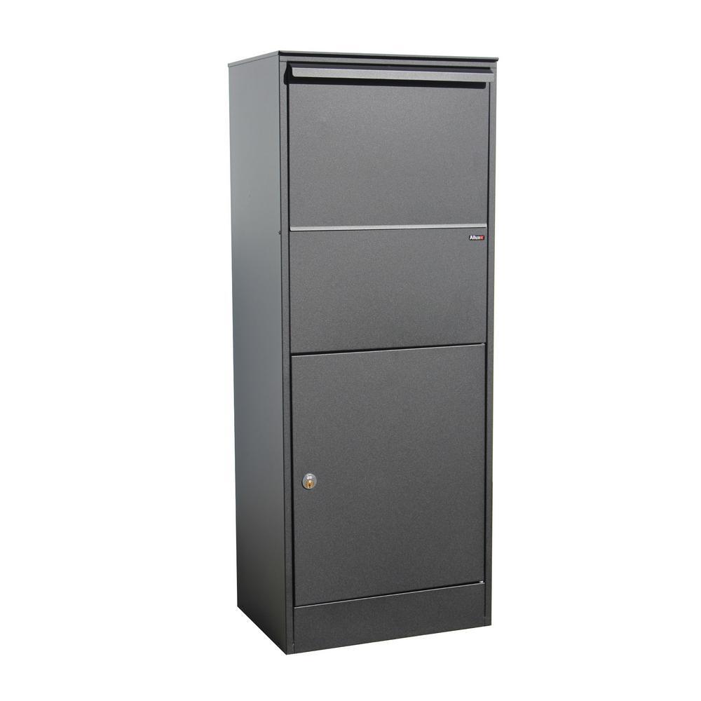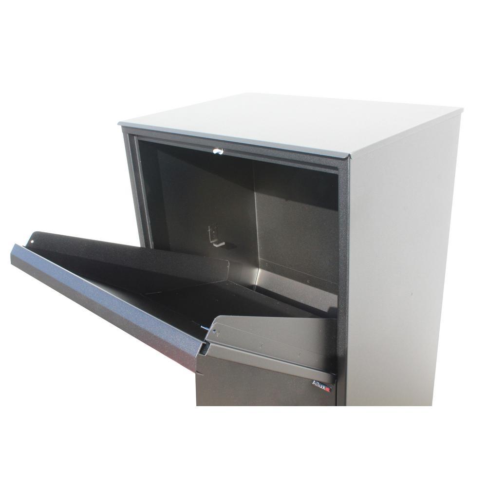 Allux 800 Large Mail/Parcel Box. Do you need more room. Our parcel mailboxes can easily hold up to 2-weeks of mail. Made of strong, galvanized steel it has a letter/parcel flap with soft closing mechanism: elegant and silent. Front mailbox retrieval door is fitted with a Ruko Lock. Parcel opening: 4-1/2 in. x 11-7/8 in. x 13 in.