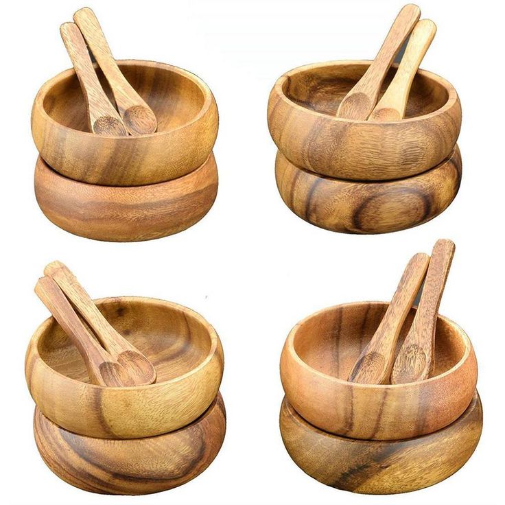 4 in. 16-Piece Wooden Round Dip and Nut Bowl Set with Spoons
