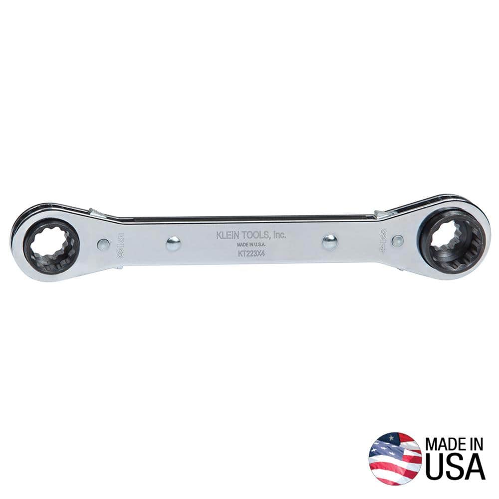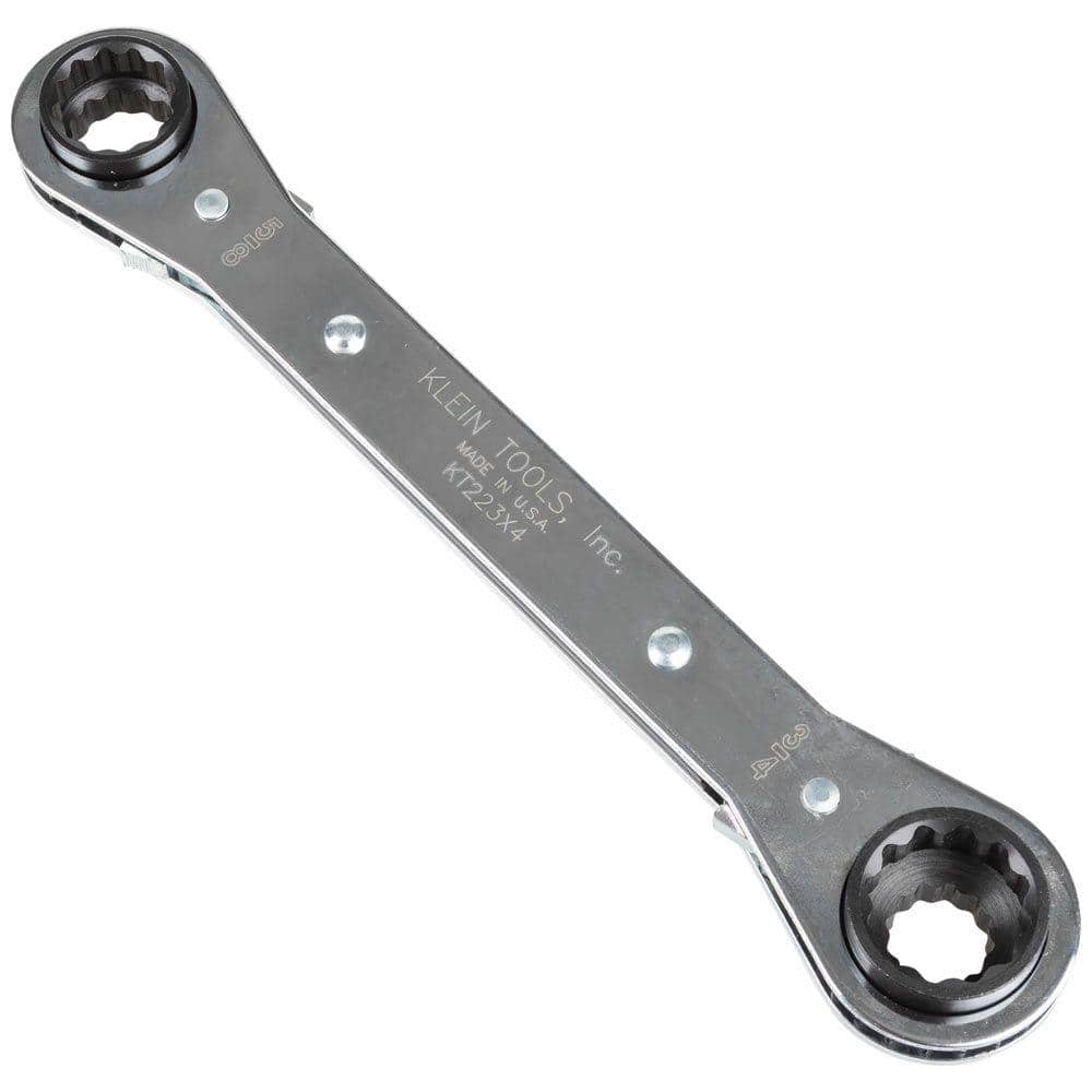 Klein Tools Lineman's 4-in-1 Reversible Ratcheting Box Wrench, SAE (1/2, 9/16, 5/8, 3/4 in.), 8.25 in Length - KT223X4