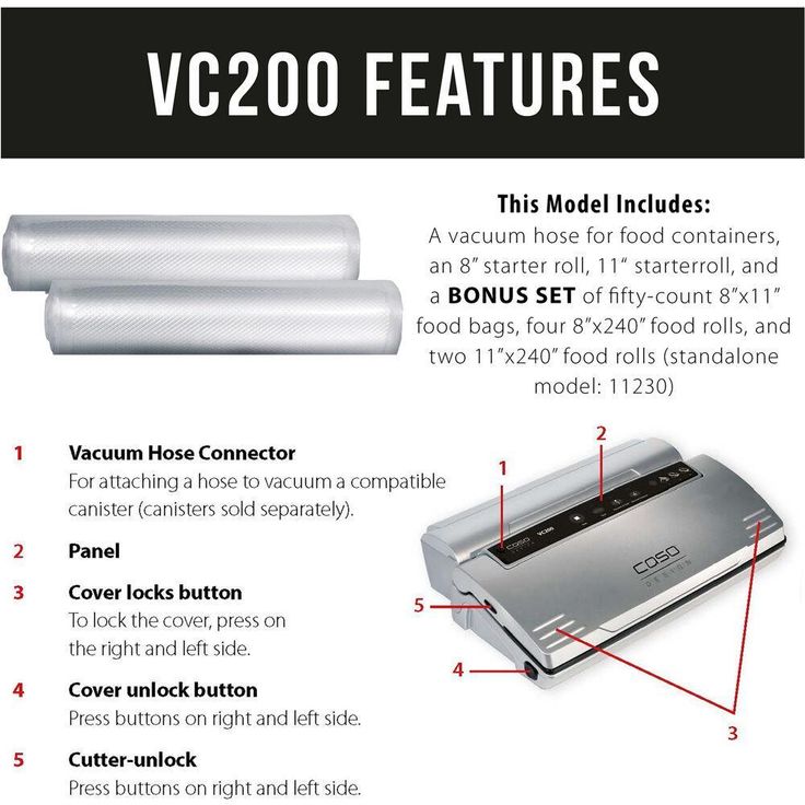VC 200 Black and Silver Food Vacuum Sealer with Fold-Out Cutter, Roll Box and Vacuum Bag Set