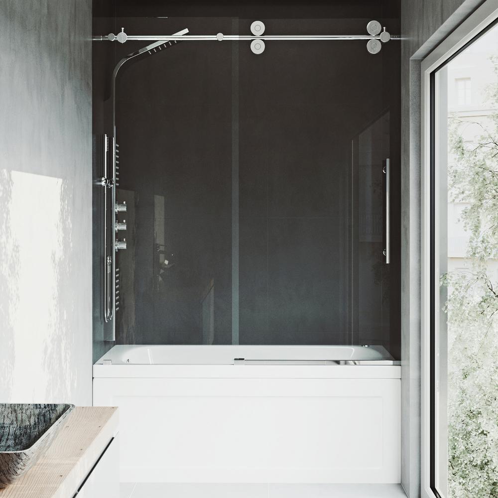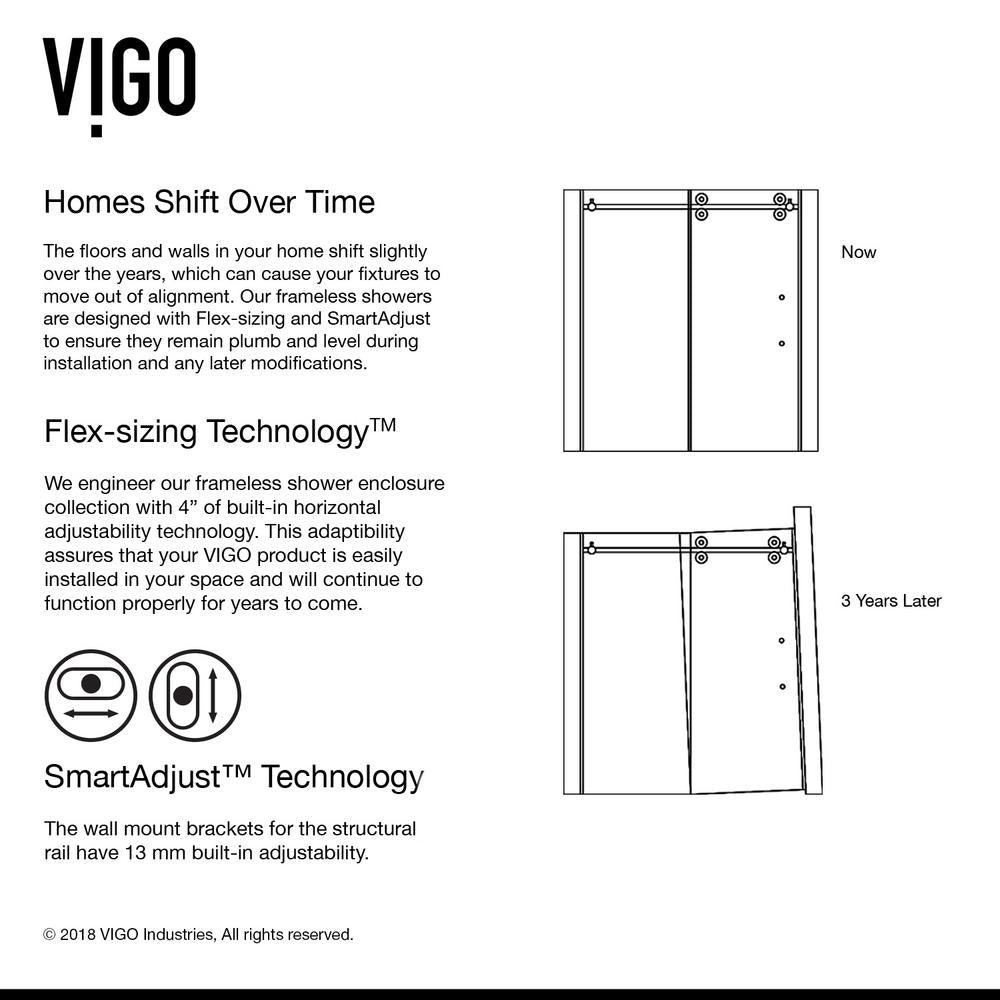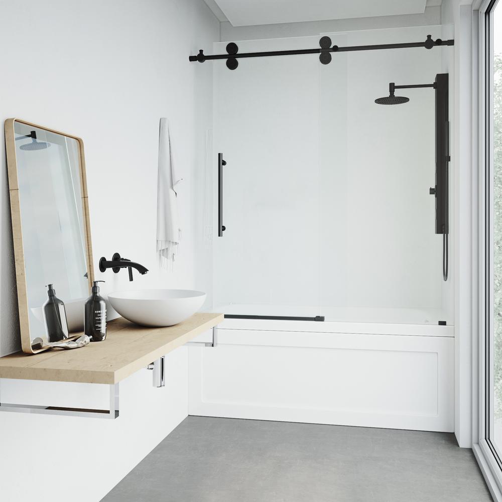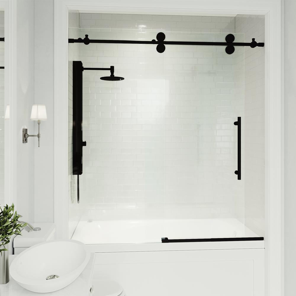 The Elan Adjustable Frameless Sliding Tub Door is everything you want and need to complete your bathroom remodel. Made with VIGOs proprietary RollerDisk Technology, this door has built-in adjustability to ensure that it is a perfect fit in your shower. Flex-Sizing and SmartAdjust Technology ensure that your shower door will remain level despite inevitable shifts that occur as homes settle. This door features resilient tempered glass to prevent dangerous splinters and shards. With the option for right or left-side installation, the VIGO Elan Tub Door is as versatile as it is sturdy. Stainless-steel hardware outfitted in a 7-layer plated, rust-free matte black finish completes this one-of-a-kind design.