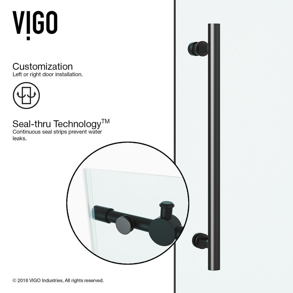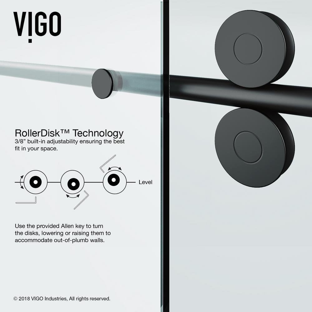 The VIGO Elan Adjustable Frameless Shower Door is everything you want and need to complete your bathroom remodel. Made with VIGOs proprietary RollerDisk Technology, this door has built-in adjustability to ensure that it is a perfect fit in your shower. Flex-Sizing and SmartAdjust Technology ensure that your shower door will remain level despite inevitable shifts that occur as homes settle. This door features resilient tempered glass to prevent dangerous splinters and shards. With the option for right or left-side installation, the VIGO Elan is as versatile as it is sturdy. Stainless-steel hardware outfitted in a 7-layer plated, rust-free matte black finish completes this one-of-a-kind design.