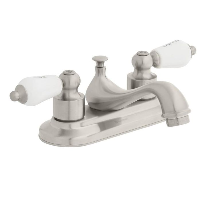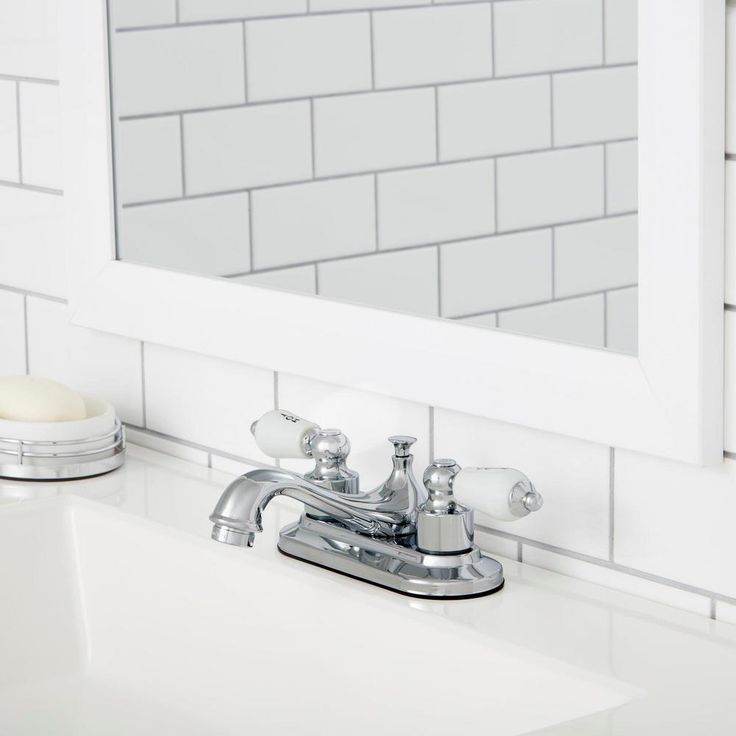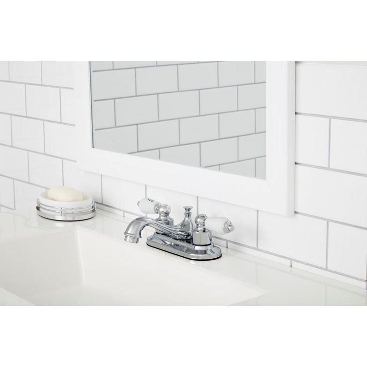 The Glacier Bay Teapot 4 in. Centerset 2-Handle Low-Arc Bathroom Faucet in Chrome has an easy to clean chrome finish and porcelain handles for a traditional look that will complement a variety of bathroom decor. WaterSense certified with a 1.2 GPM water flow to help reduce water use, this faucet also has ceramic disc cartridges to help prevent dripping. Easy to use with a 2-handle design and low-arc spout, installation is a breeze with the deck plate mount. Featuring the Glacier Bay exclusive Click Install drain assembly for quick and simple installation. Pair with other pieces from the Teapot Collection for a complete and polished look.