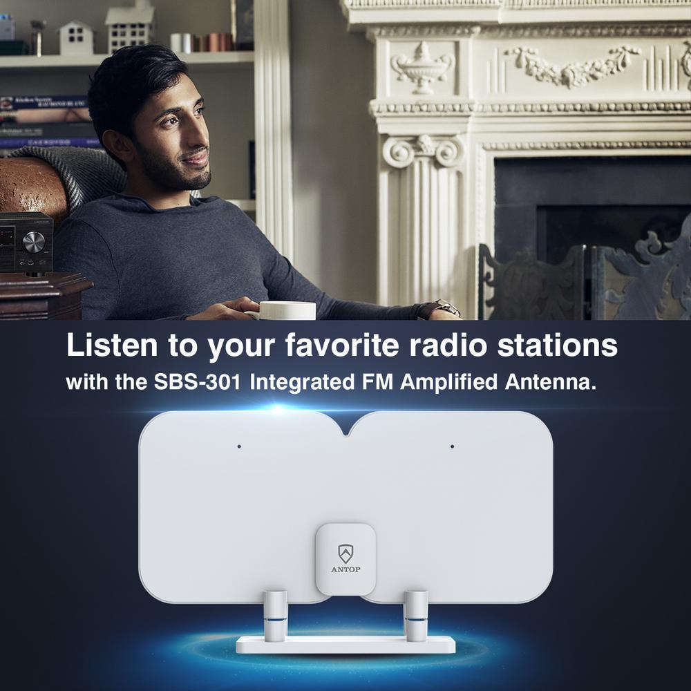 • Watch free TV for life on multiple devices, no monthly bill for watching TV, the SBS-301 HD smart antenna HDTV and FM paper-thin amplified antenna with smart boost system receives free over-the-air TV signals, from networks such as ABC, CBS, NBC, PBS, Fox, Univision and others