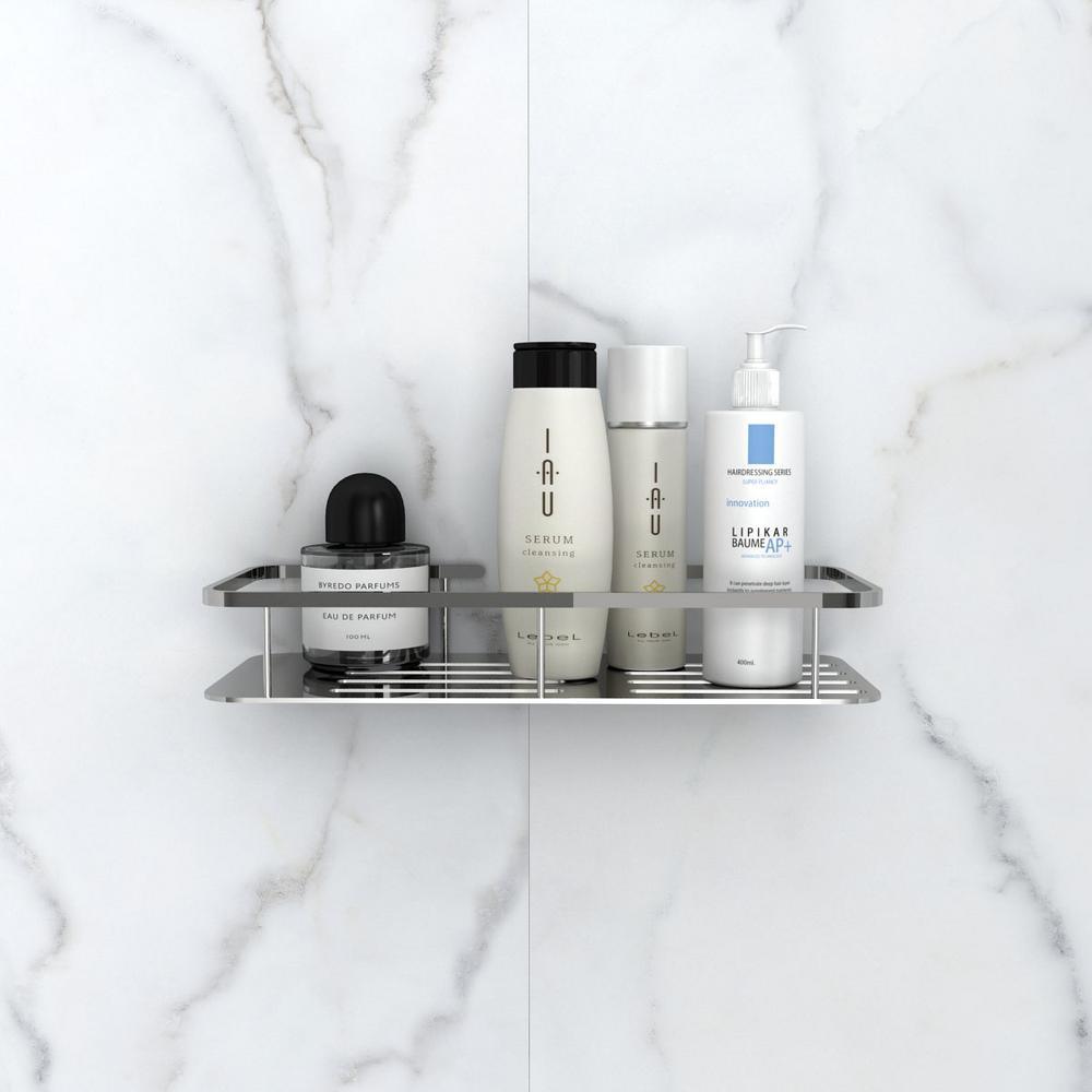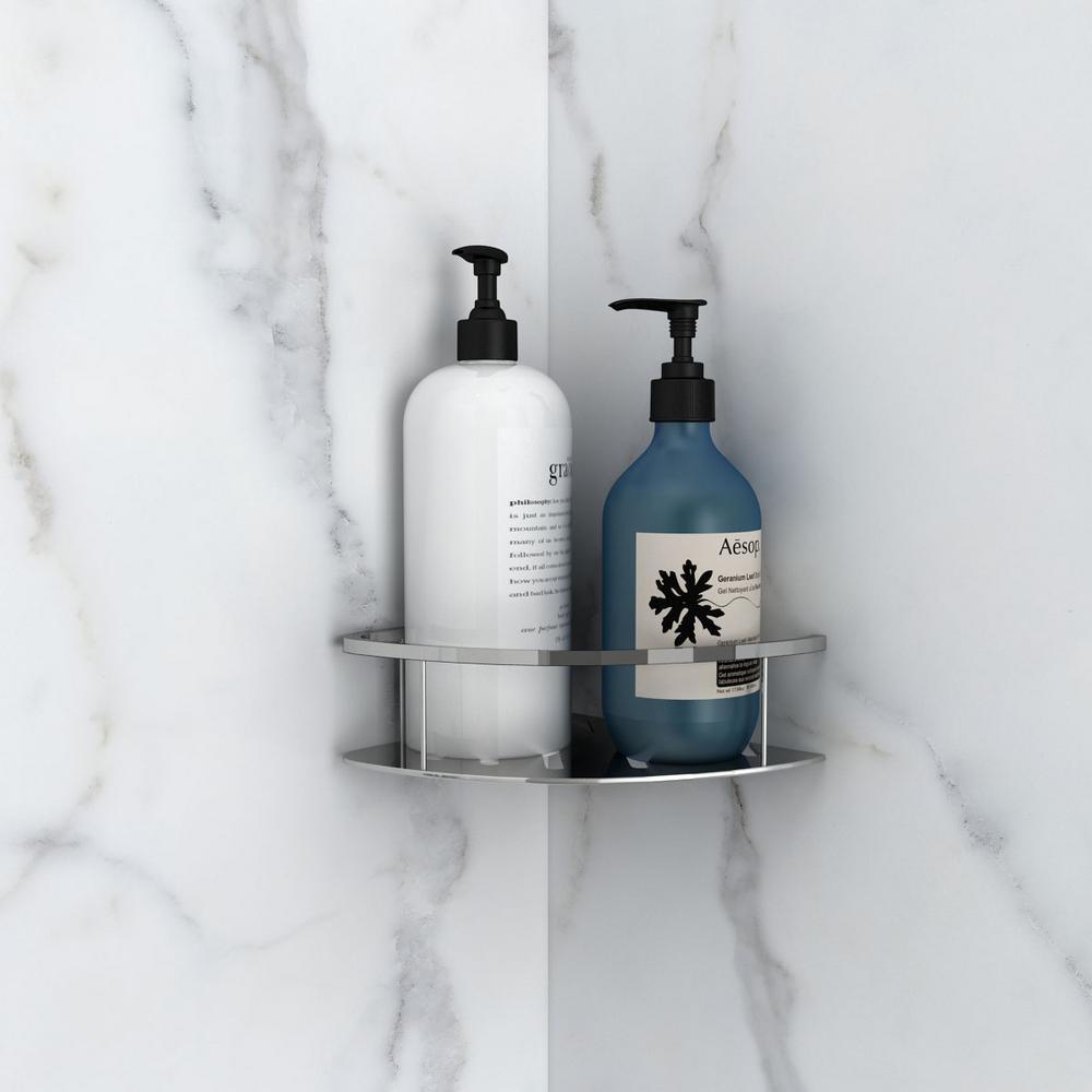 Create a complete makeover with coordinating Passage shower base, frameless shower door and shower shelves