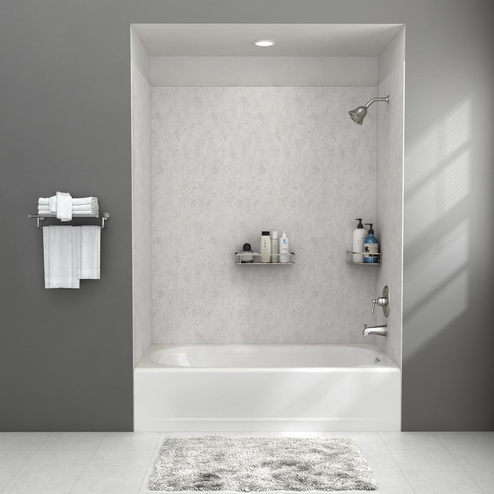 Give your bathroom a fresh update with the Passage Alcove Bath Wall system from American Standard. Decorative wall panels in today’s most popular patterns are the perfect alternative to tile and grout. Easy to install, these durable, pre-cut panels adhere securely to wall-board and wipe clean with ease.