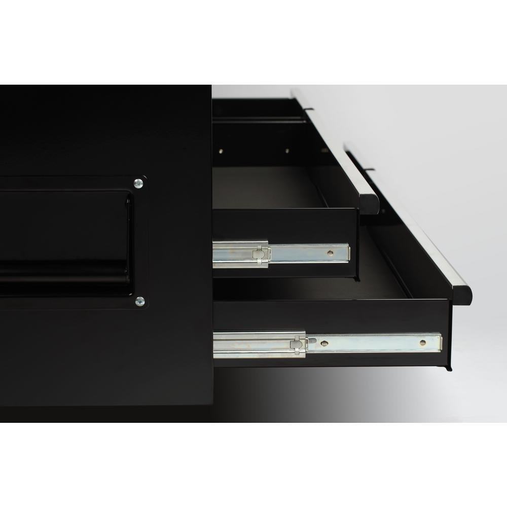 Full extension ball bearing drawer slides support up to 100 lbs. and feature secure latch retention system that ensures your drawers are completely closed and secured
