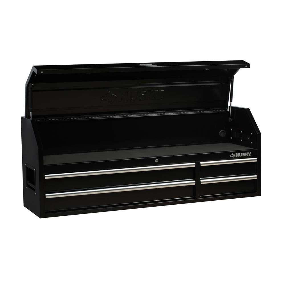 Integrated power strip inside top till with 4 grounded outlets and 2 USB ports