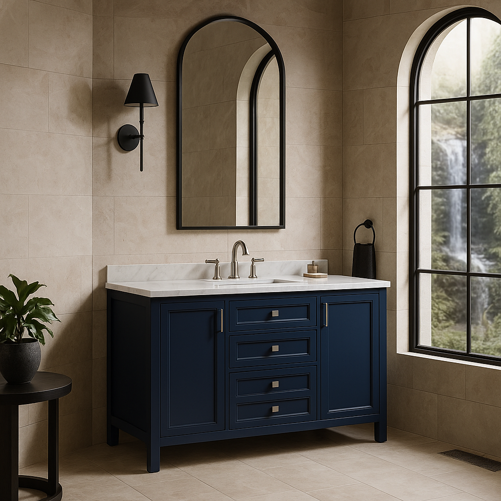 - Elegant Design: Features a midnight blue finish and Carrara marble countertop for a sophisticated look.