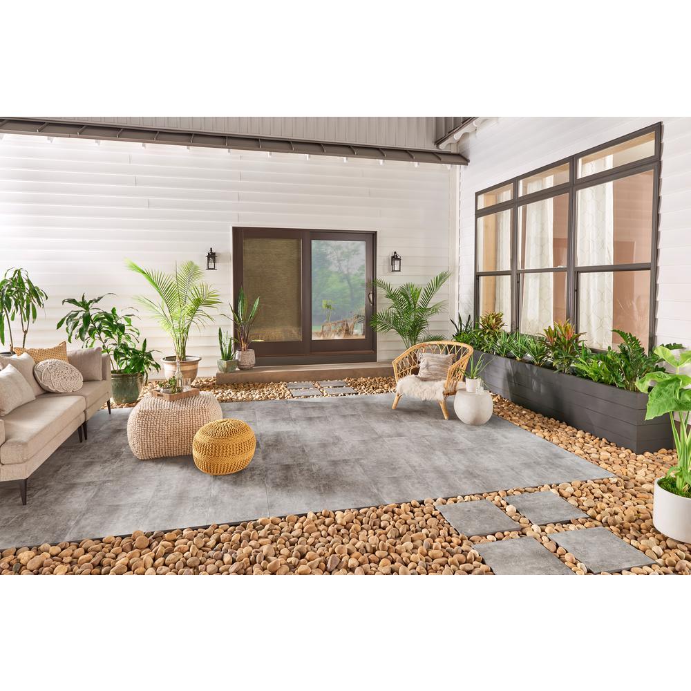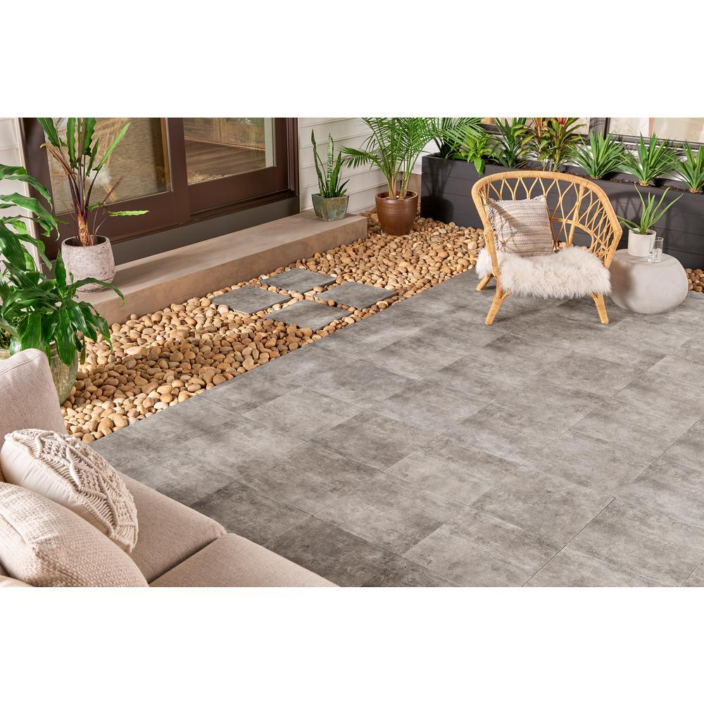 Ontario D Grey 16 in. x 16 in. Glazed Porcelain Paver adds an elegant beauty on your patio or walkway. Ideal for indoor or outdoor applications, these Porcelain pavers are durable and have shades of gray that create a subtle visual interest. With a matte finish, the tile provides an aged look that blends with the surroundings to create a perfect setting.