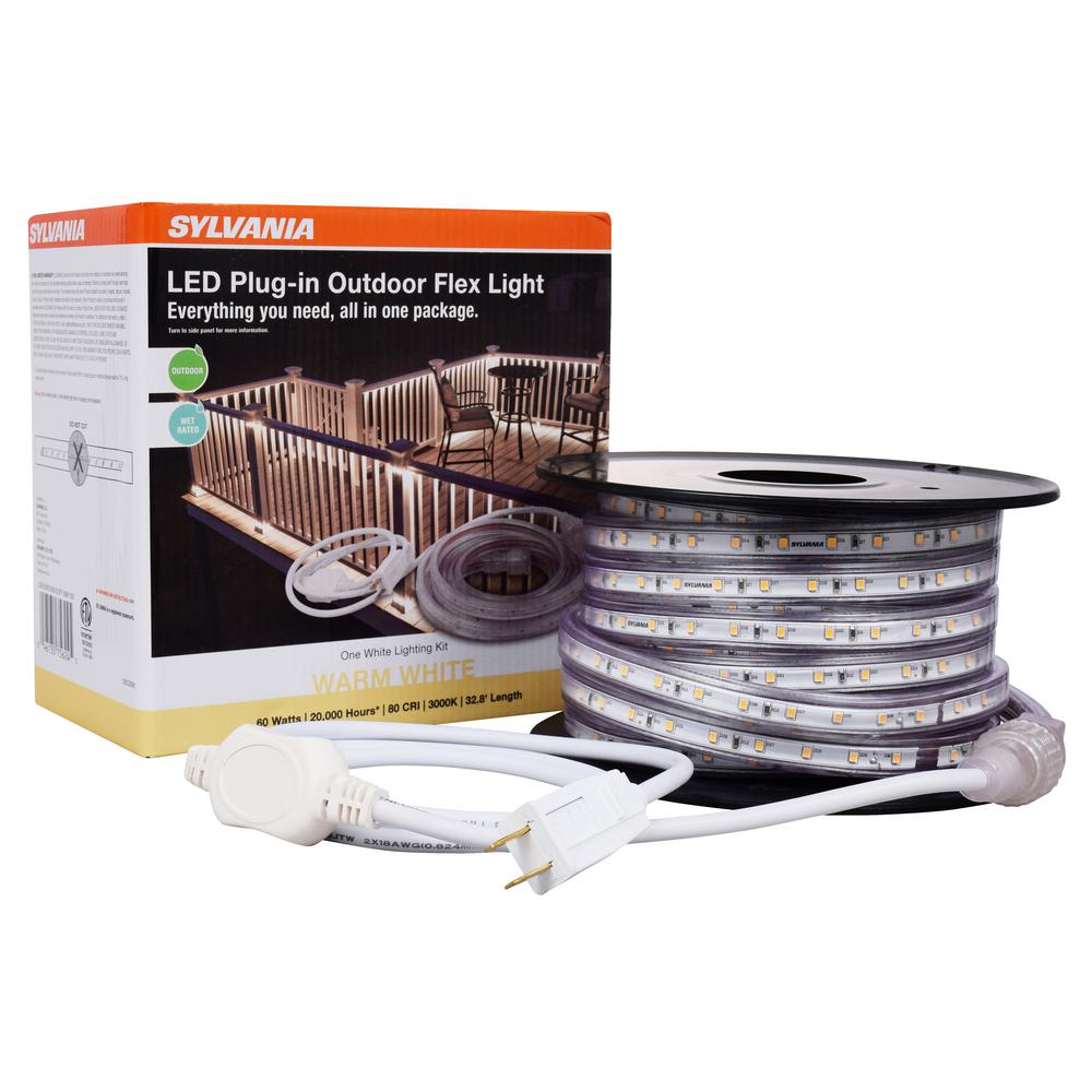 Sylvania LED Plug-In Outdoor Flex Light offers a complete solution for your lighting needs. Suitable for outdoor use year-round. The kit includes strip, AC power cord, clips and screws as well as a full guide to installation. With LED enjoy long life and low power usage.