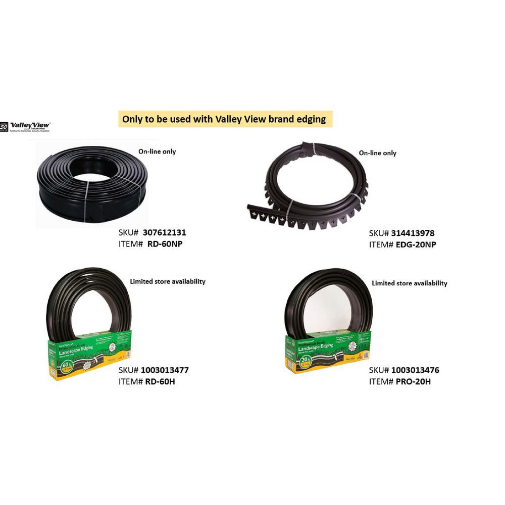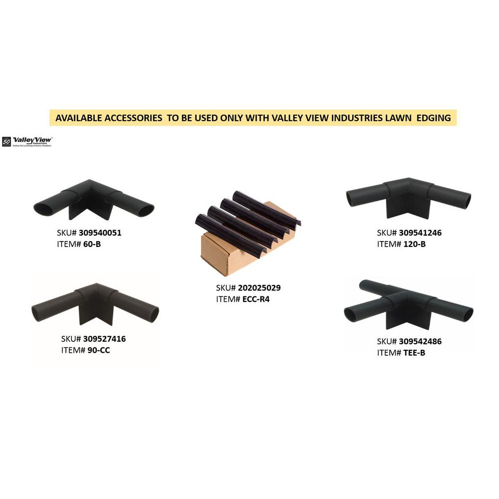ONLY to be used with Valley View brand beaded landscape edgings which include: Easy Diamond no-dig edging and Royal Diamond Professional 20ft. and 60ft. edgings. NOT to be used with any Vigoro brand edging. Provides a more "polished" look to your edging design. Other angular options available as well: T-shape, V-shape, Wide angle.