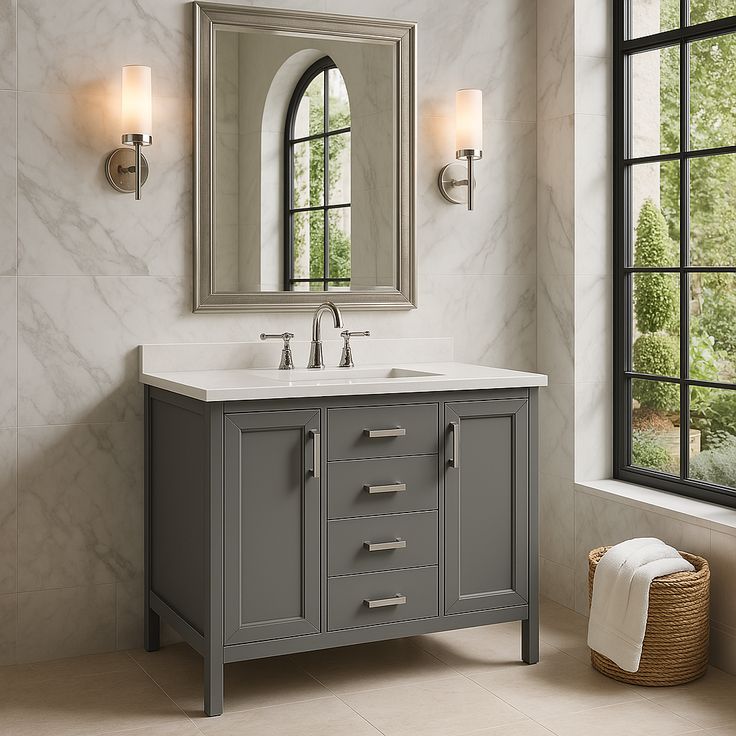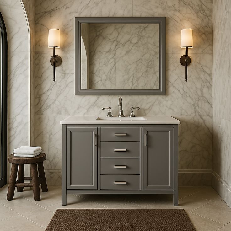 Enhance your bathroom's style and functionality with this elegant pebble grey vanity mirror—order now to transform your space.