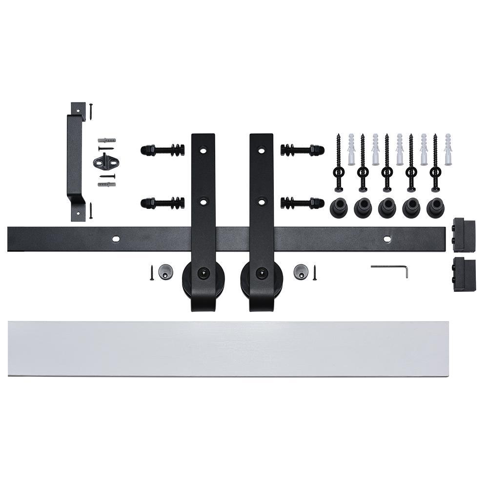 Kit includes solid wood door with laminate face with 78-3/4 in. primed wood mounting board, matte black handle and rail hardware assembly required