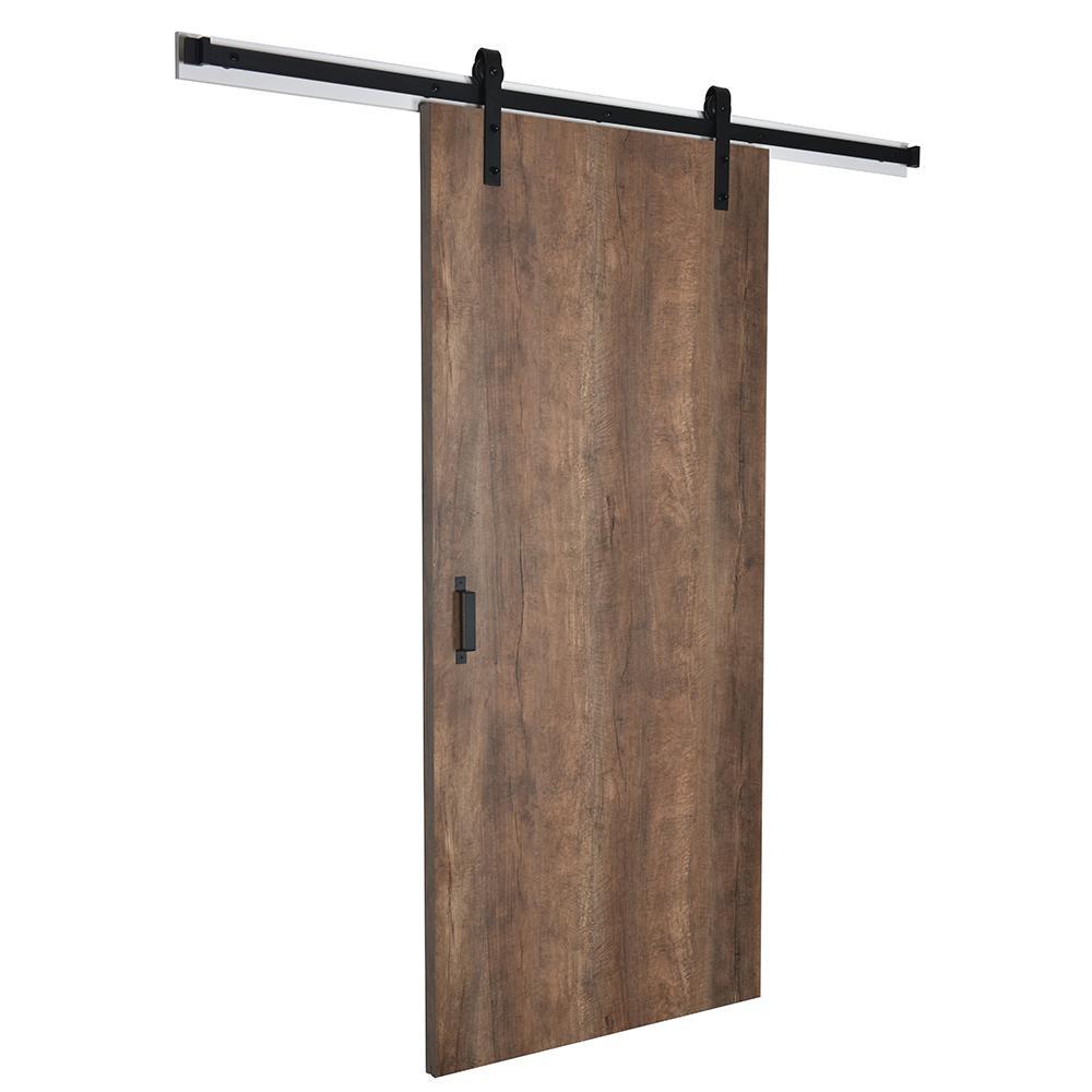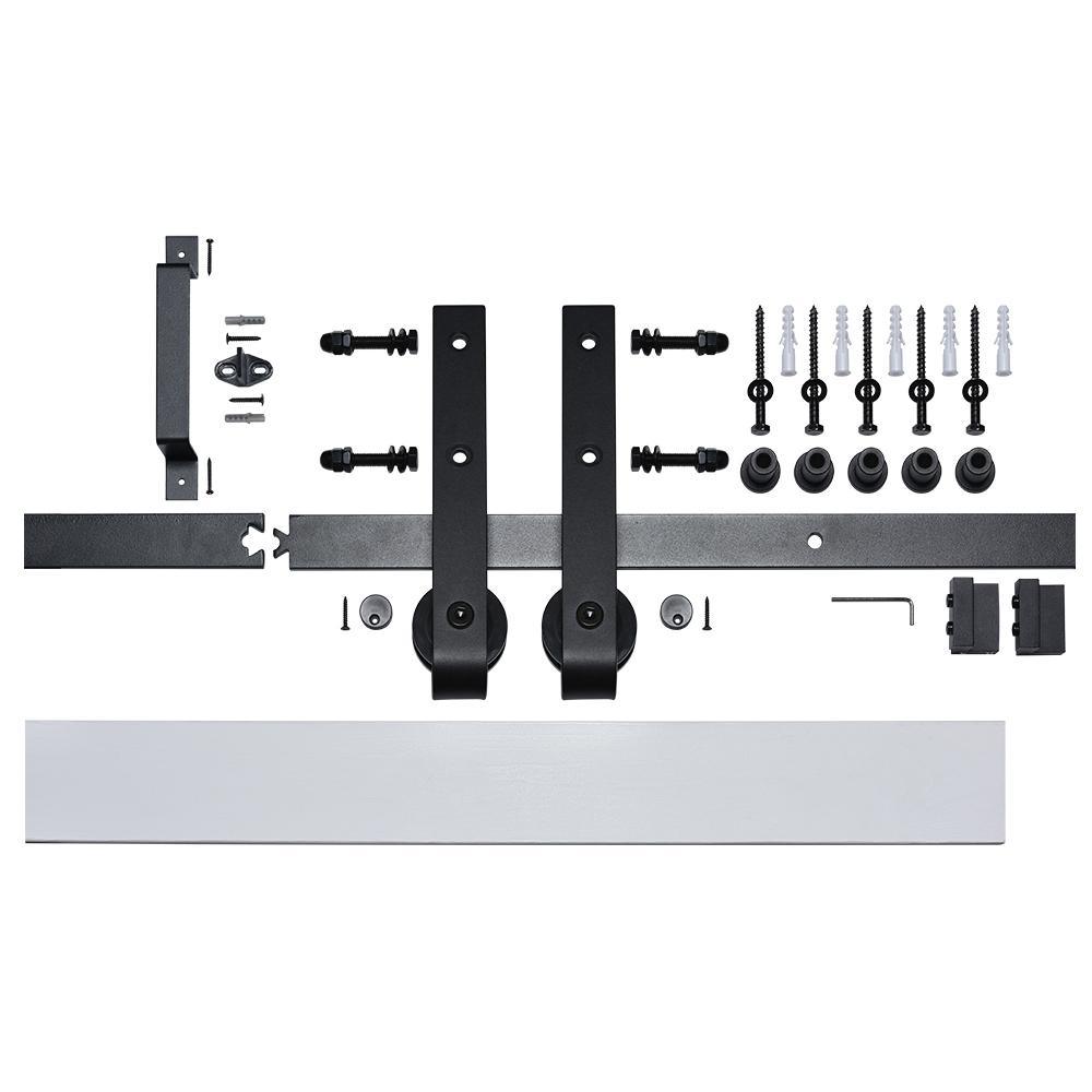 Kit includes solid wood door with laminate face, 90-3/4 in. primed wood mounting board, matte black handle and rail hardware; assembly required