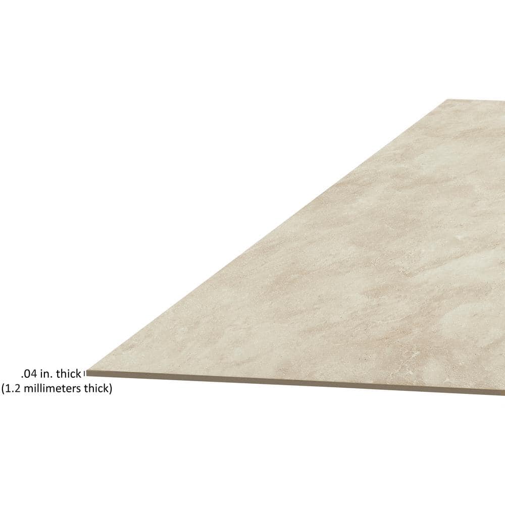 A DIY-friendly peel-and-stick vinyl tile that mimics natural Carrera marble for quick floor updates. Each 12 in. x 12 in. tile is 1.2 mm thick with a medium-gloss finish, designed for indoor residential spaces. Install over concrete, plywood, or existing vinyl without additional adhesives.