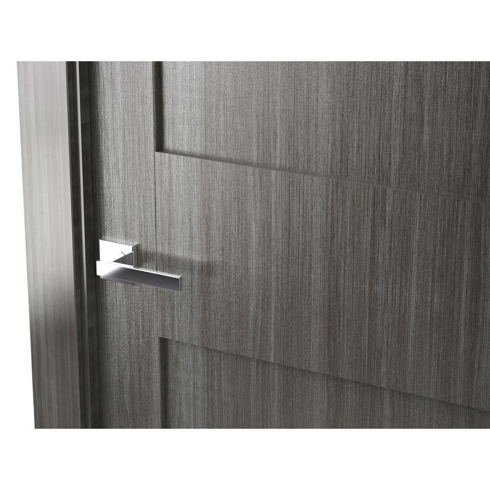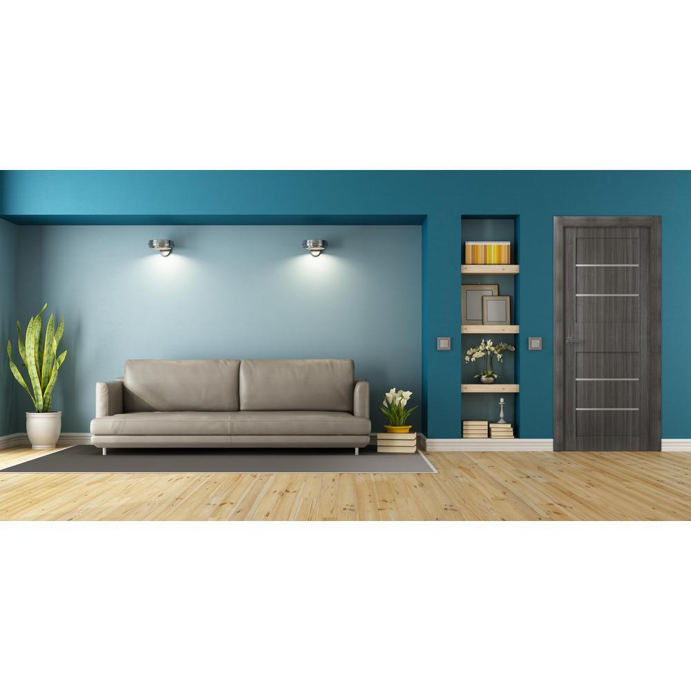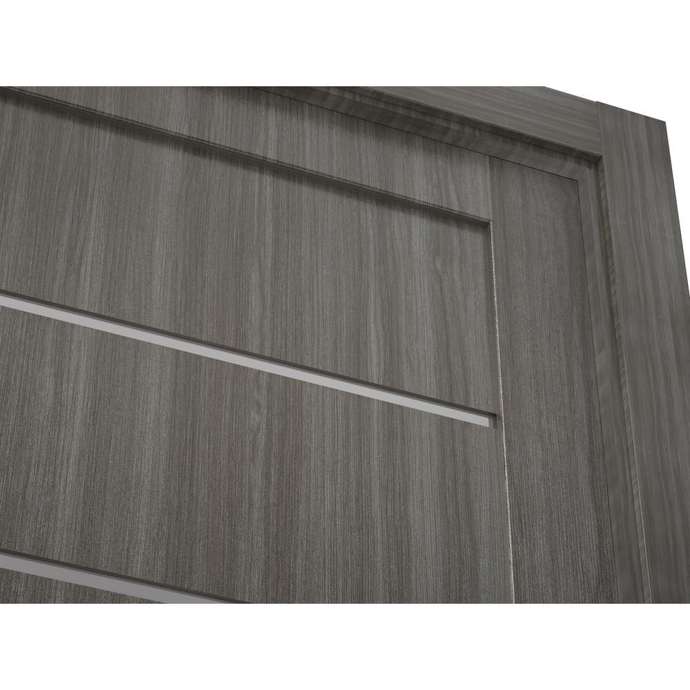 Liah Gray Oak is a constituent part door. The pre-finished panels are sided horizontally with the inlays of frosted glass, which in combination with sharp angles makes the door a unique designer solution for any modern interior. The stiles and rails of the door are made of solid pine and the middle panels are made of a high quality MDF board coated with an eco-friendly Evo Pro finish. The panels are intermittent with the inlays of 1/4 in. thick frosted glass. The door is coated with Gray Oak Evo Pro finish with a decorative pattern on it. It is a safe, durable and eco-friendly material with a number of advantages.