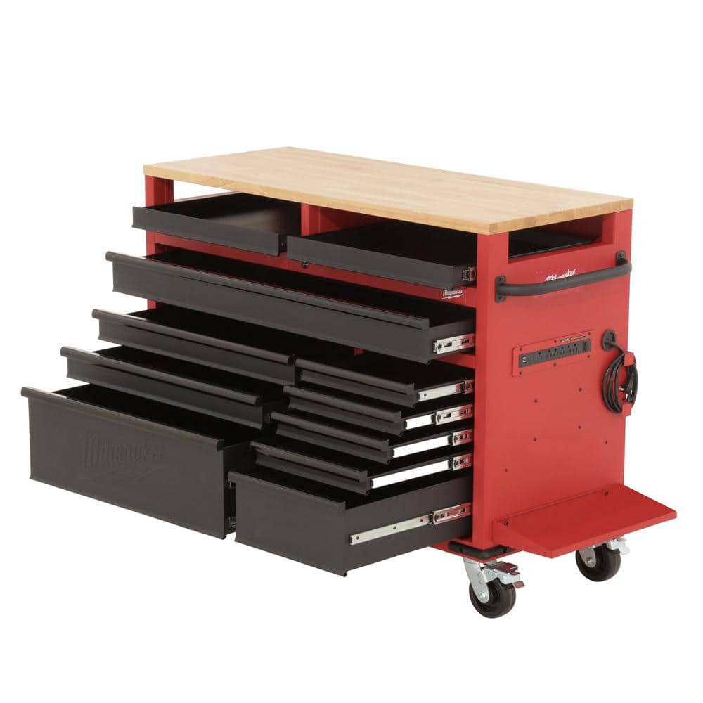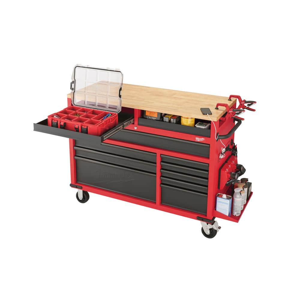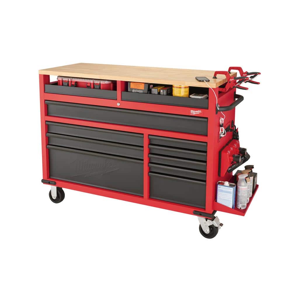Milwaukee High-Capacity 52 in. 11-Drawer Mobile Workbench with Clamp-Ready Wood Top