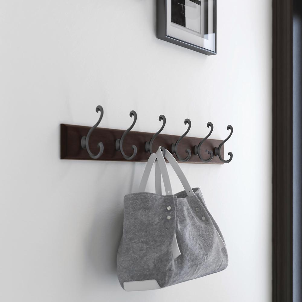 This 24 in. scroll hook rail is a versatile organization piece for your home. This decorative hook rail has six coat and hat hooks that feature a decorative scroll design. Use it to organize your bookbags, scarves, purses, coats, keys and more.