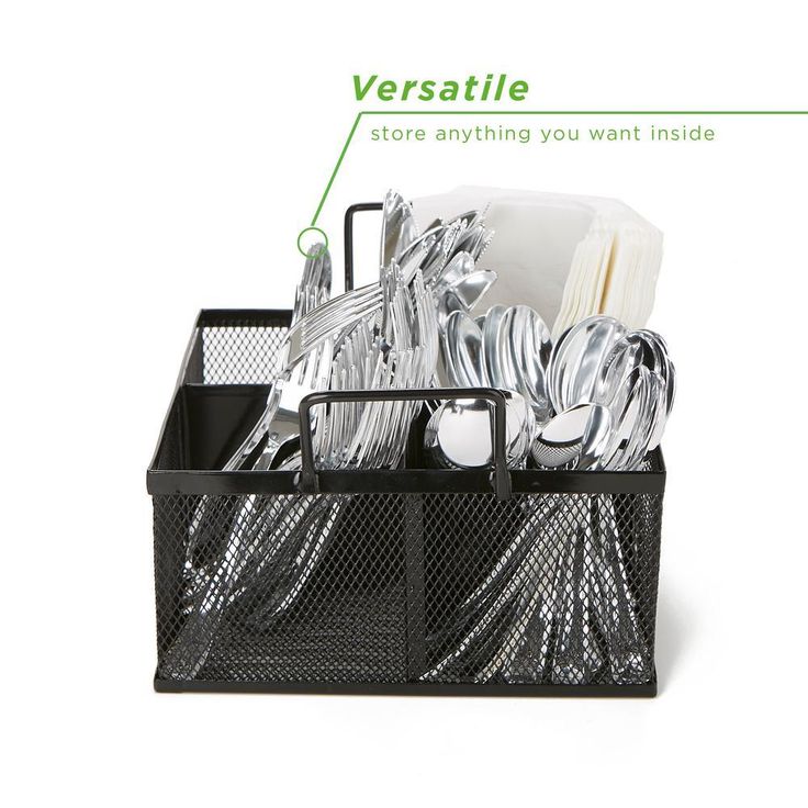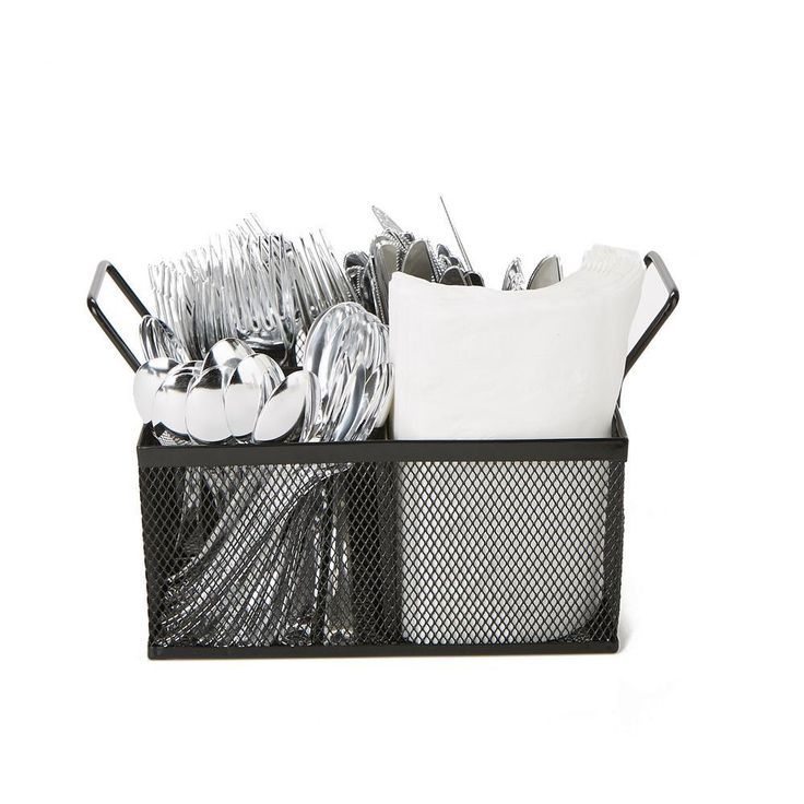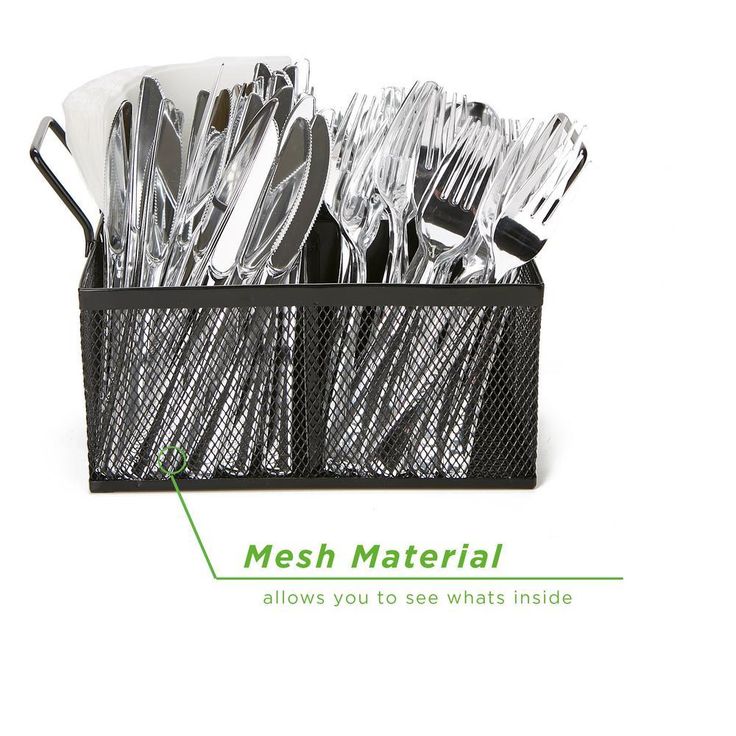 4-Section Black Mesh Cutlery Caddy, Cutlery Holder, Flatware Organizer, Forks, Spoons, Knives, Countertops