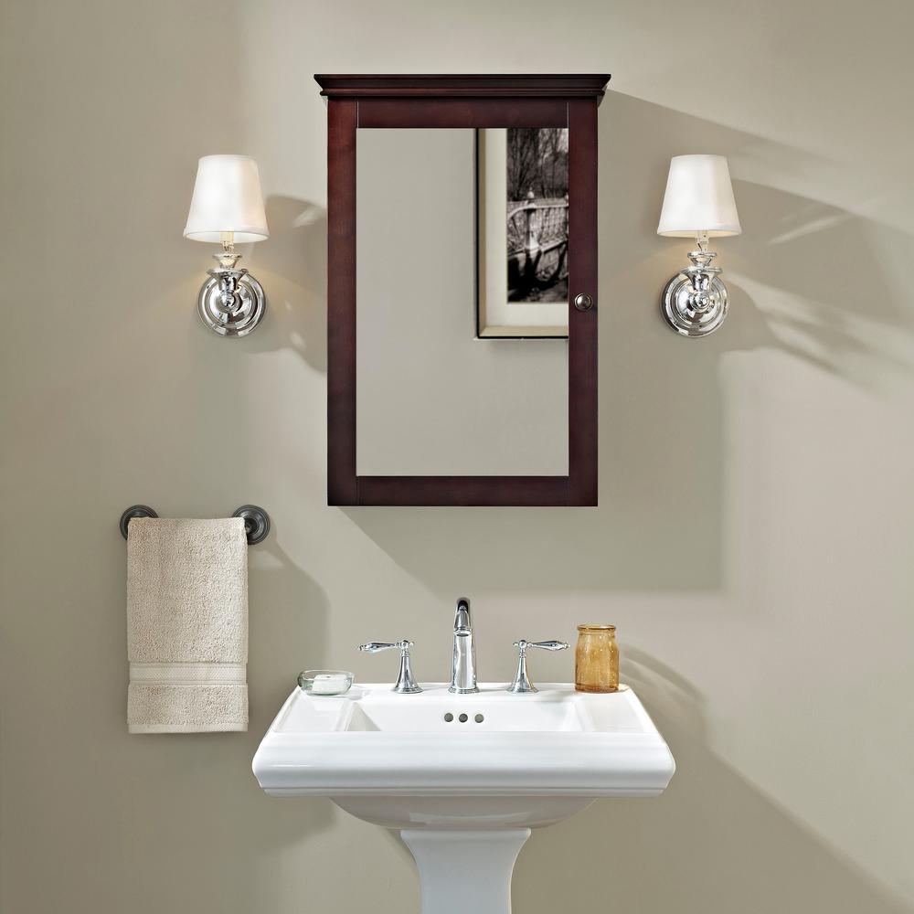 Remodeling a bathroom can be an expensive undertaking, but savvy homeowners know that a few little changes go a long way toward improving a space. Replacing a dated, worn medicine cabinet is one of those touches. Clean lines and lots of mirror space improve any decor, which is why the Lydia mirrored wall cabinet is so popular. A large glass mirror is ideally complimented by a "just right" border of genuine wood, capped nicely by modern flared molding. Inside, you will find plenty of storage space for those little personal items that often clutter that precious real estate round the sink.
