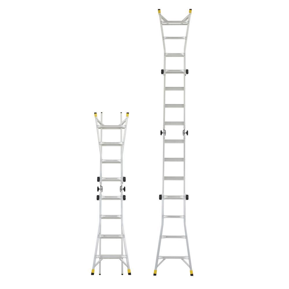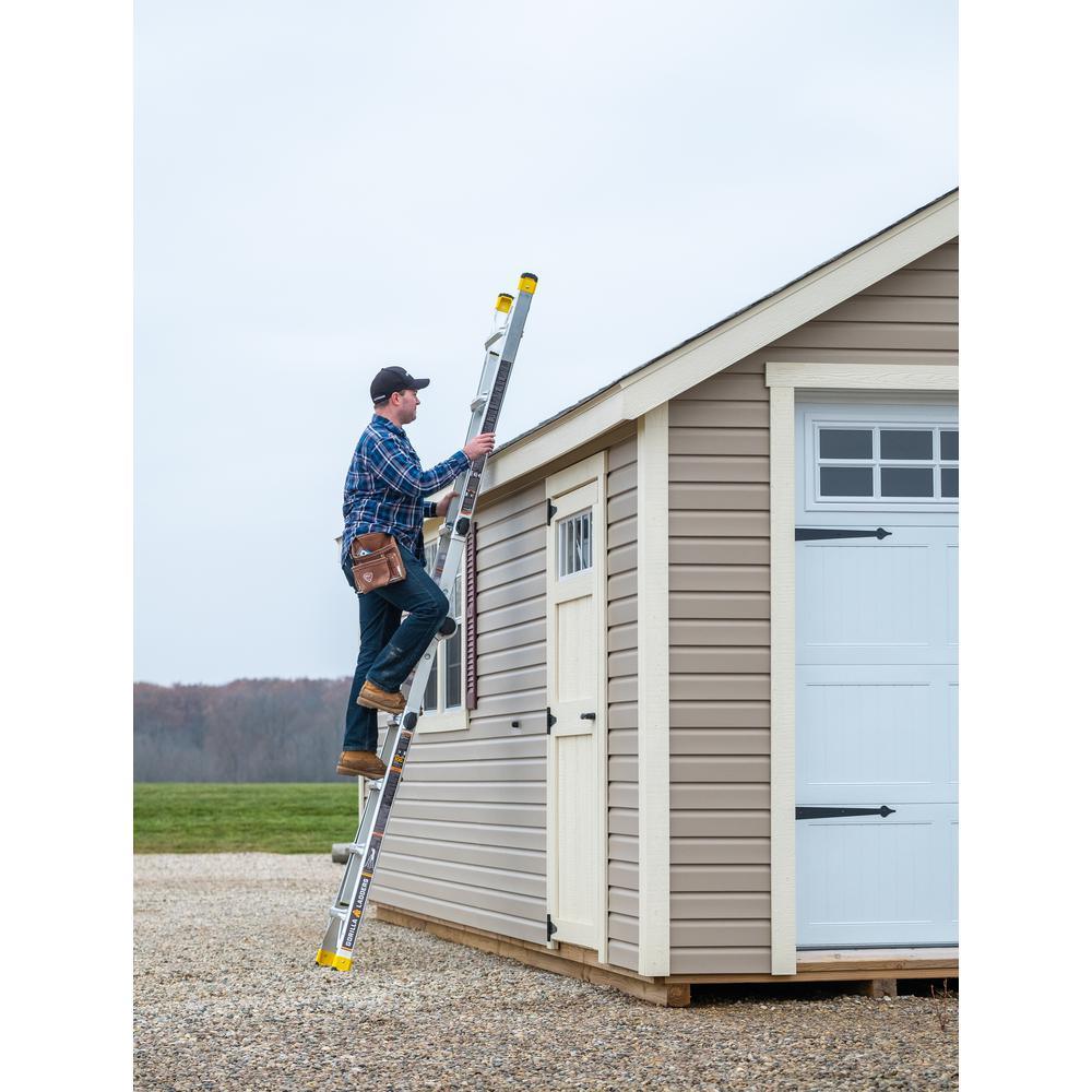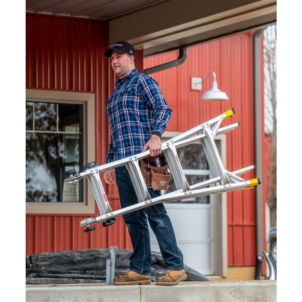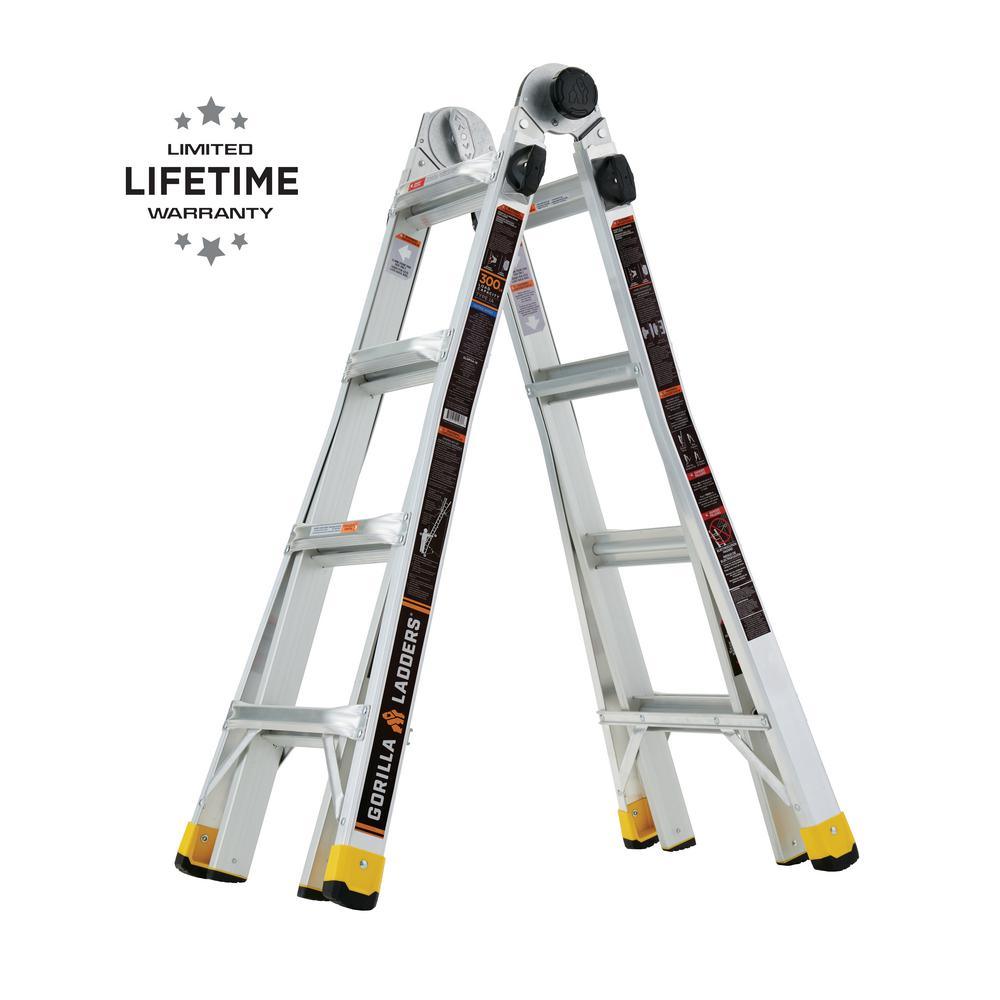 LIGHTER, STRONGER, EASIER the newly designed Gorilla Ladders 18 ft. Reach MPXA Aluminum Multi-Position ladder combines versatility, safety and strength. With 20 telescoping adjustable heights, this ladder can be used as an Extension Ladder, Double-Sided Twin Stepladder, 90° Wall Ladder, Stairway Stepladder and as 2 Scaffold Bases with the purchase of the MPX Rail Brackets. Easily adjust the height from all sides with 1 hand with the user-friendly speed locks. The extra-large, heavy-duty MPXA hinges give you improved strength with less flex and sway for safer climbing. The innovative rail design makes the MPXA ladder lighter weight yet stronger than comparable models. This Gorilla Ladders 18 ft. Reach MPXA Multi-Position Ladder is the next generation of safe, strong, innovative and versatile climbing products that is perfect for all your project needs.