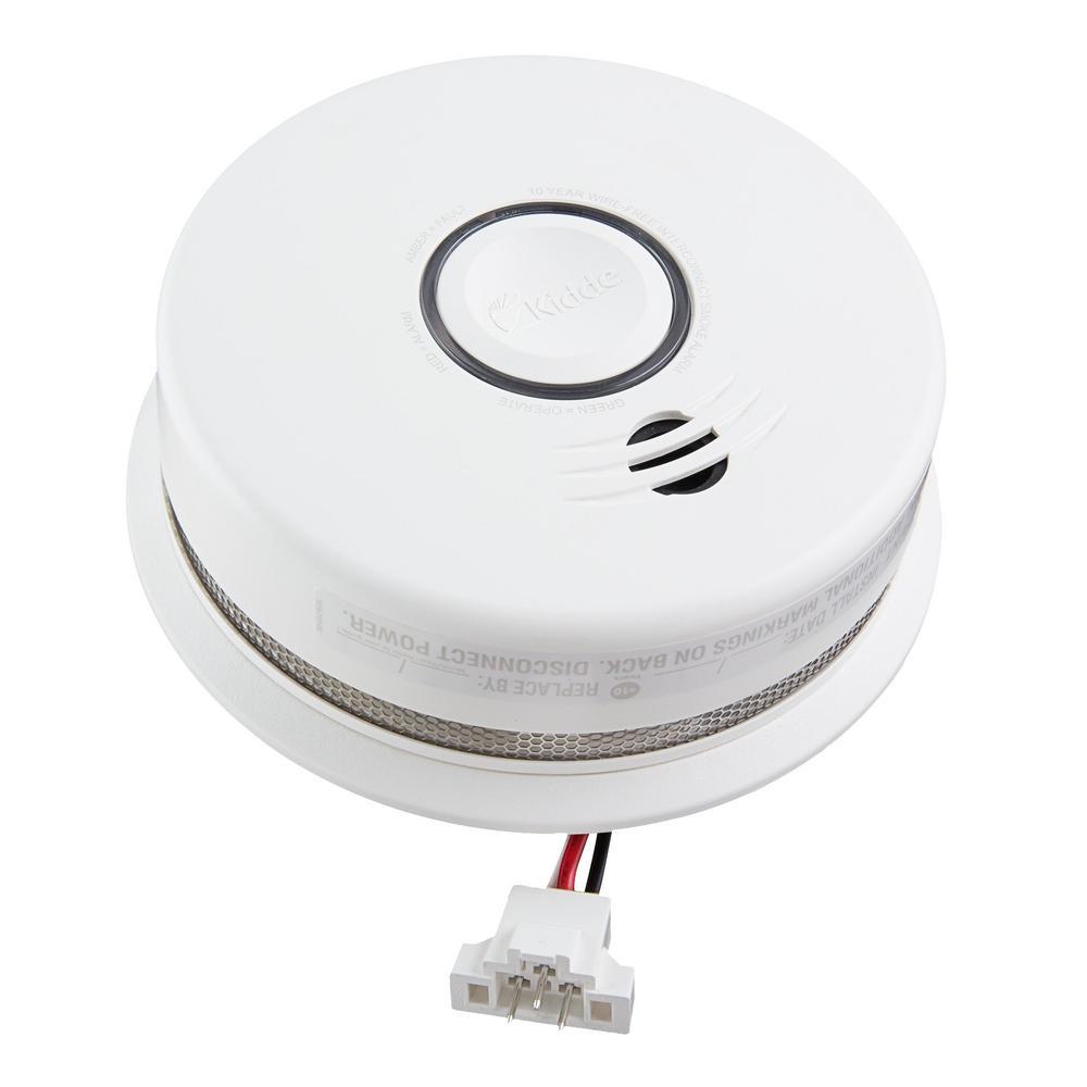 This Kidde 120-Volt Hardwired Voice Warning Smoke Alarm with Wire-Free Interconnect and 10-Year Lithium Battery Backup features voice alert, wireless interconnectivity, and a sealed-in 10-Year Backup Battery. This alarm requires hardwire installation and includes a 10-year Battery Backup to provide protection even during power outages. The voice alarm announces "Fire" if a hazard is detected and indicates when the Smart Hush feature has been activated. This alarm interconnects with other Kidde hardwire interconnect alarms and features wire-free interconnectivity with other Kidde 10-Year Wire-Free Interconnect alarms. If one unit is triggered, all interconnected alarms will sound. Wire-free interconnectivity allows for easy interconnect setup and eliminates the need for expensive rewiring. This alarm is also compatible with the Kidde Smart Bridge app and hub (sold separately), which will send a message to your smart phone, tablet or PC alerting you to a potential threat.Shop all Kidde Smoke Detectors here.
