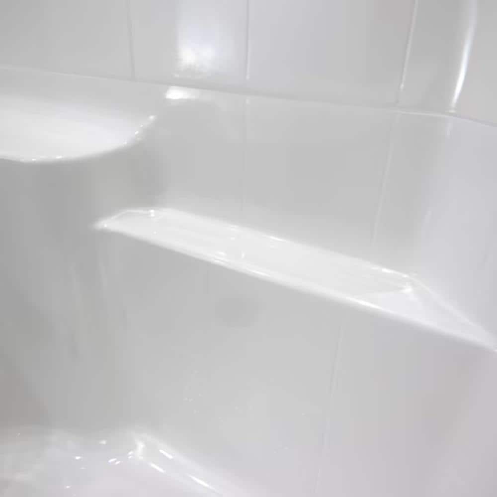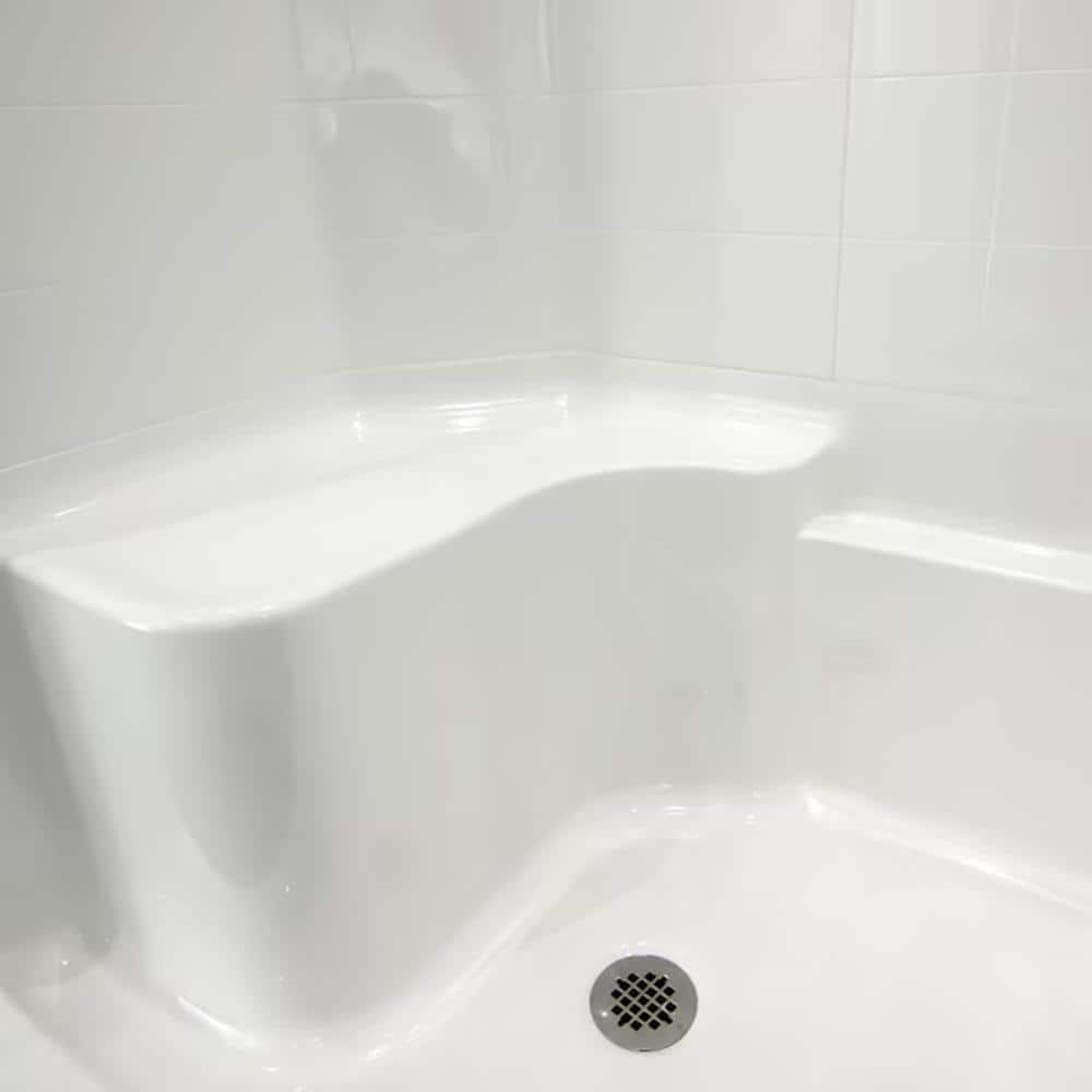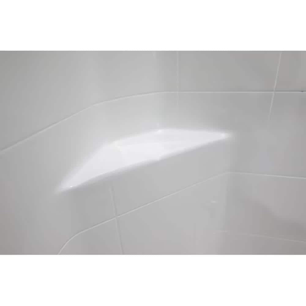One-piece low-threshold shower designed for easy entry and a clean, seamless look. Durable AcrylX applied acrylic over ArmorCore reinforcement delivers a high-gloss, easy-to-clean surface with long-lasting strength. Features a right-hand molded seat, center drain, and integrated shelves for practical storage.