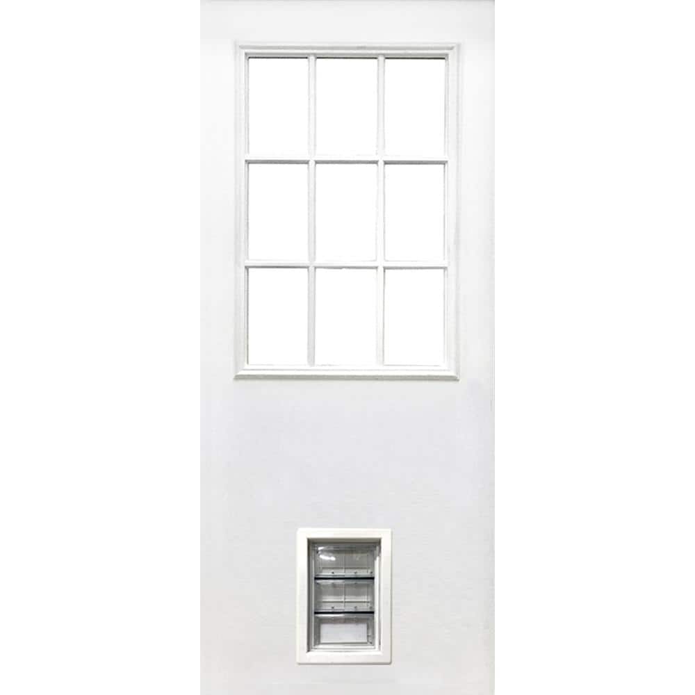 31-3/4 in. x 79 in. Reliant Series Clear 9-Lite White Primed Fiberglass Front Door Slab with Medium Pet Door