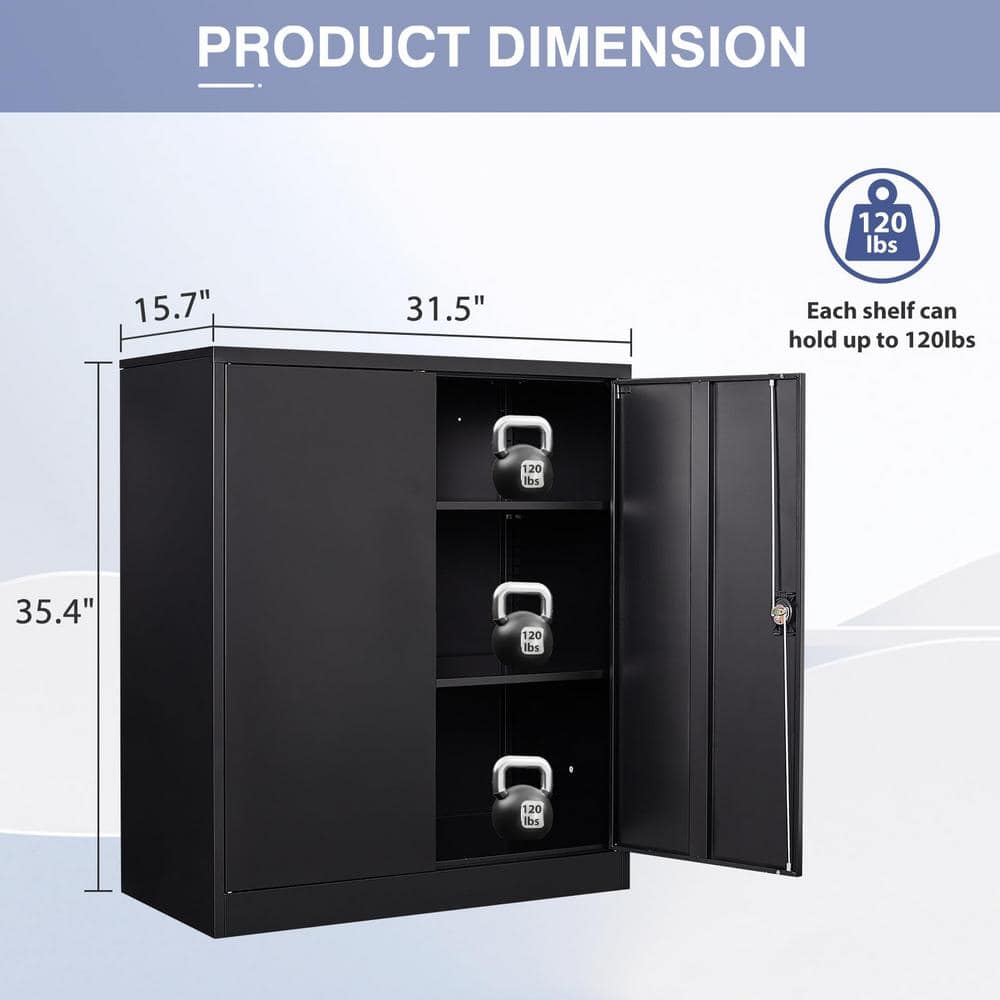 31.5 in. W x 35.4 in. H x 15.7 in. D 2-Adjustable Shelves Metal Garage Storage Freestanding Cabinet w/ 2-Doors in Black