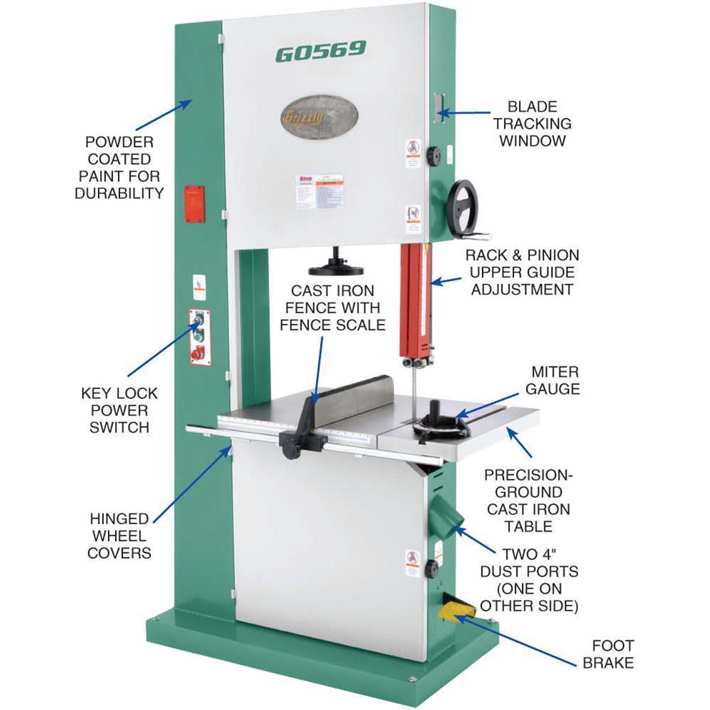 Our 24 in. Industrial Bandsaws are loaded with features not found in saws costing much more. You will appreciate the two 4 in. dust ports when you put the power and speed of this saw to the test. The ball-bearing blade guides ensure accurate cutting, and the quick-release blade tension makes changing blades a breeze. Our exclusive rack-and-pinion table tilt makes accurate angle cuts easy, while also adding additional support to the table for those really big workpieces. The conveniently mounted foot brake, blade guard with scale, and removable safety key are features you will be glad to have.