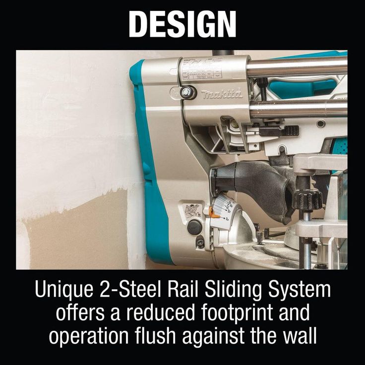Unique 2-steel rail sliding system design offers single slide-glide operation, reduced saw footprint allows operation flush against a wall