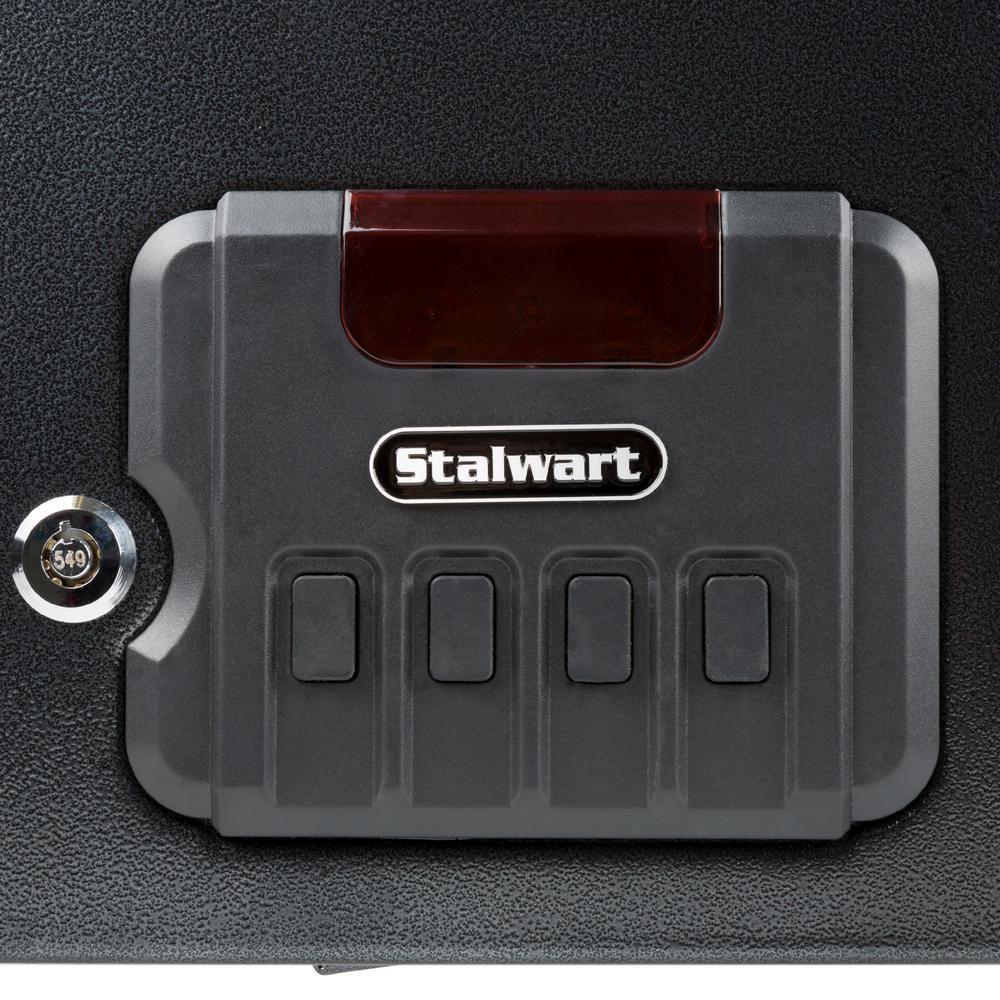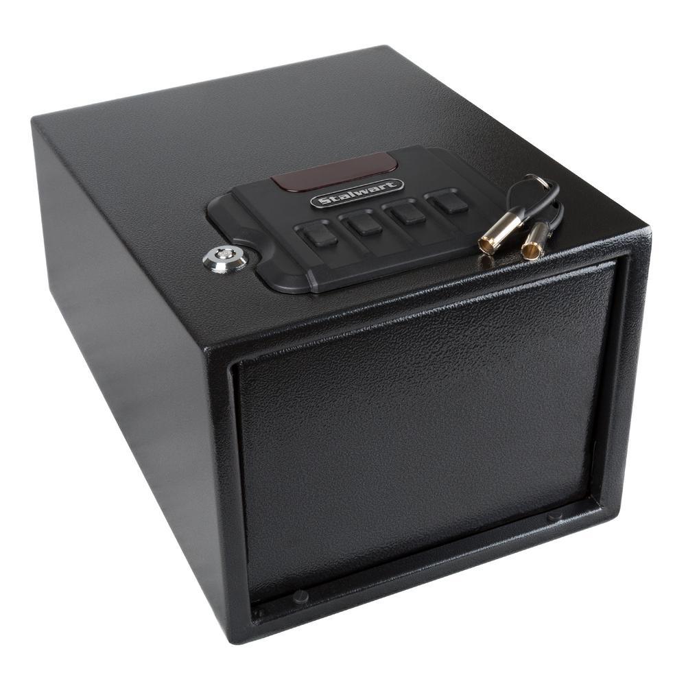 Lock your valuables and small guns securely behind thick, steel walls with the Gun Safe with Digital Lock and Manual Override Keys by Stalwart. This gun safe features a digital keypad unlocking system that is programmable with passcodes from 3-8 digits. It is also unlockable with a set of override keys provided incase your passcode is forgotten. This electronic safe comes with mounting hardware to let you mount to a wall or floor to add extra security to your valuables.