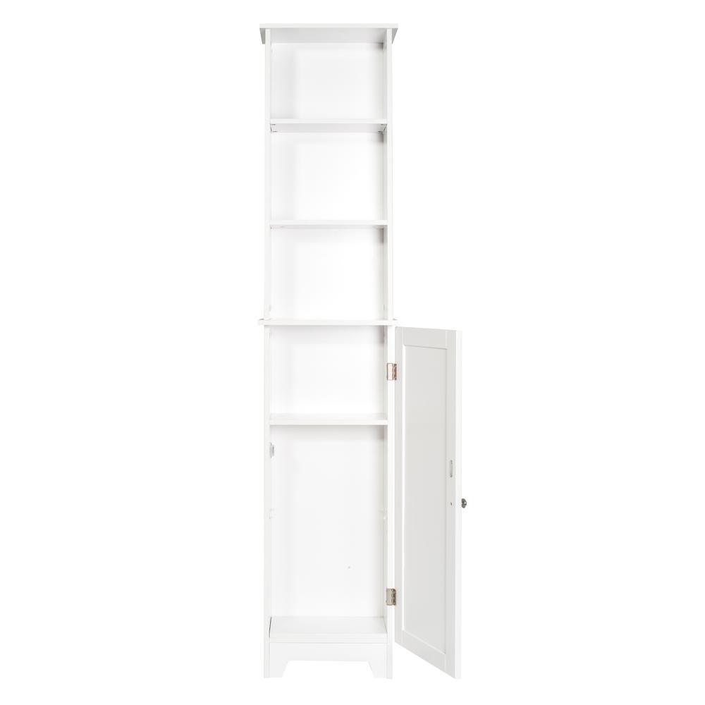6-total shelves: center top 2-shelves are adjustable, lower cabinet two shelves are adjustable, lower cabinet door and stylish hardware included