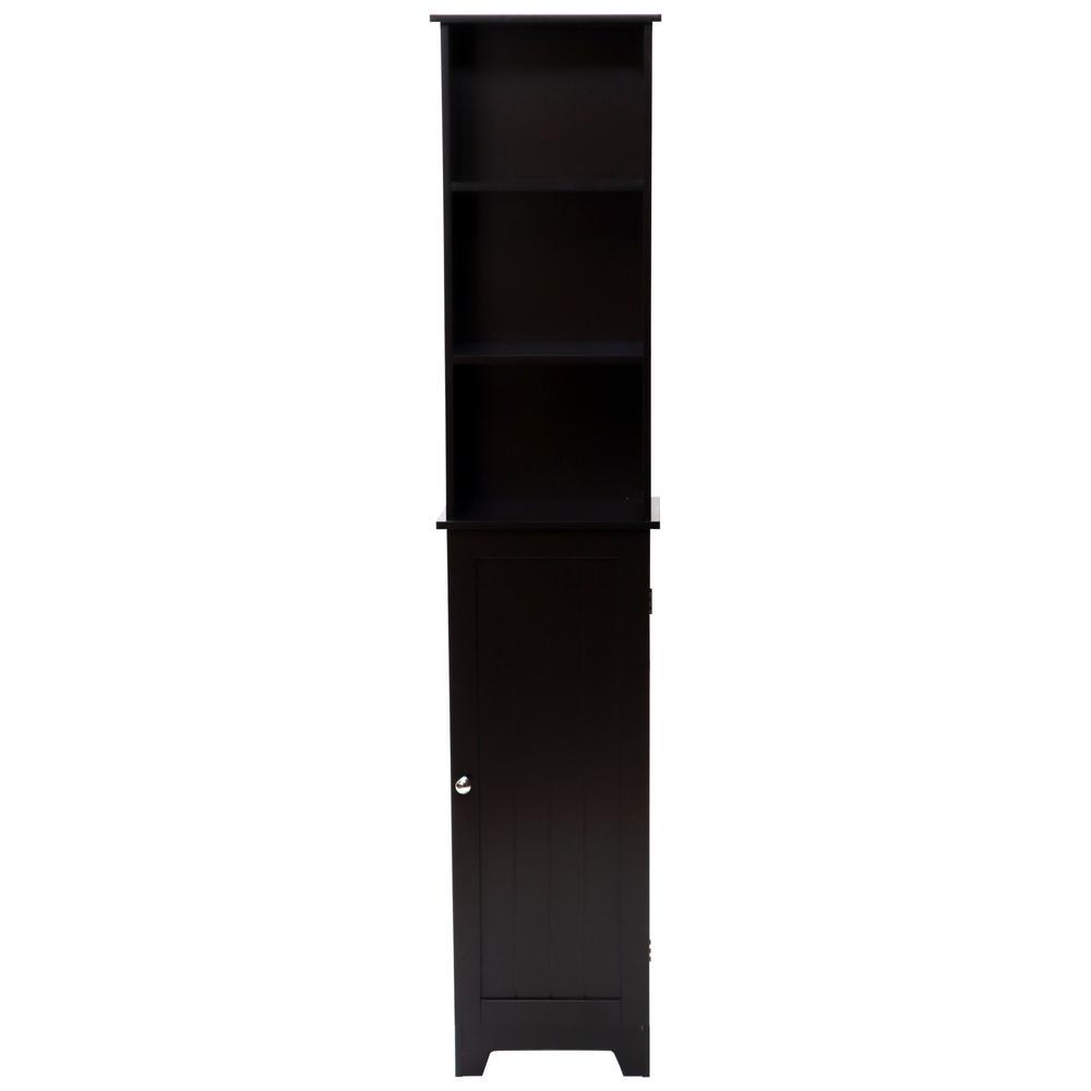 ContemporaryCountry 13.5in.W x 8in.D x 65in.H Free Standing Floor Shelf with Wainscot Panels & Lower Cabinet in Espresso