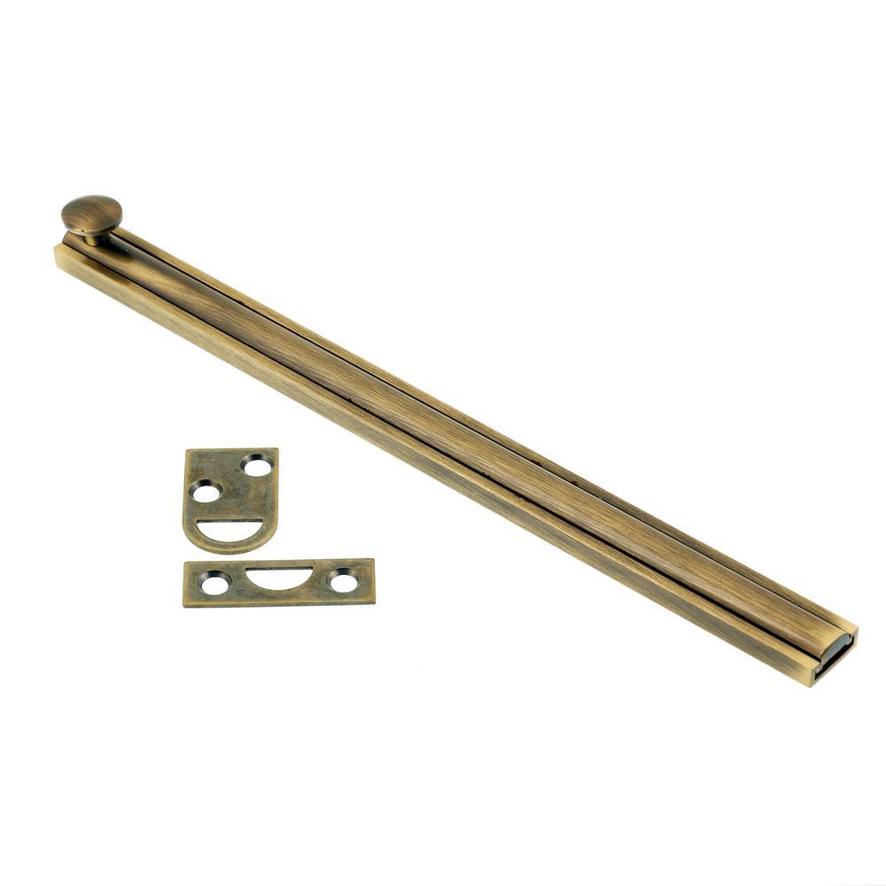 The sleek 8 in. Solid Brass Surface Bolt from idh by St. Simons makes it the perfect addition to your door and window hardware. This smooth sliding bolt features a tension spring on the bottom, which keeps the surface from being damaged or marred. It can be easily installed to complement any decor, whether classic or contemporary. Beautifully crafted from 100% solid brass, its versatile uses include securing doors, windows, cabinets or as a horizontal privacy bolt. Demand Quality. Demand idh.