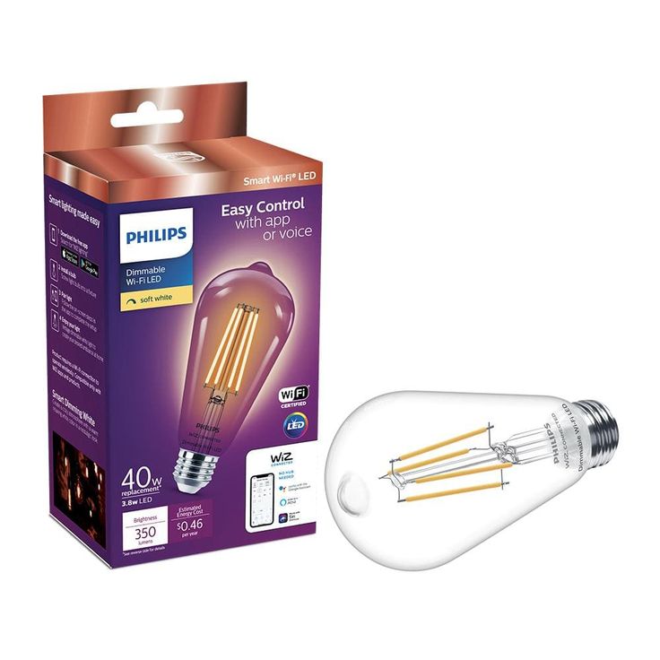 Philips Smart Wi-Fi LED lighting puts you in complete control of your lighting with smart bulbs that are easy to use, functional, and affordable. We’ve made all your favorite high-quality Philips bulbs smarter, just connect them to your existing Wi-Fi network. Smart Dimming Soft White – create a cozy atmosphere with a warm relaxing soft white color. Control your lights wherever you are using the WiZ app or your favorite compatible voice control device. Product requires a WiFi connection to operate wirelessly. Compatible with WiZ apps and products along with Google Assistant, Amazon Alexa, and Siri Shortcuts