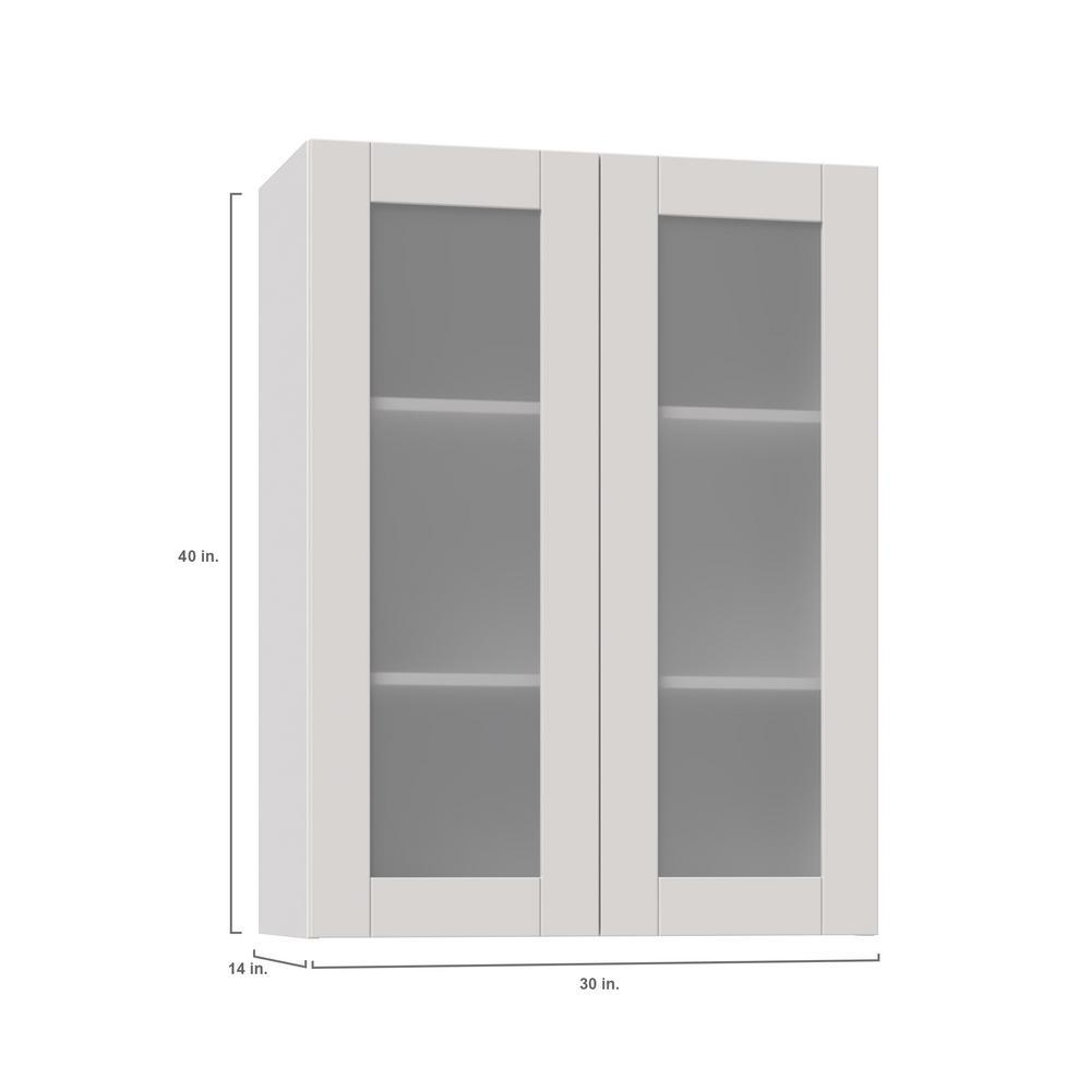 Shaker Assembled 30x40x14 in. Wall Cabinet with Frosted Glass Doors in Vanilla White