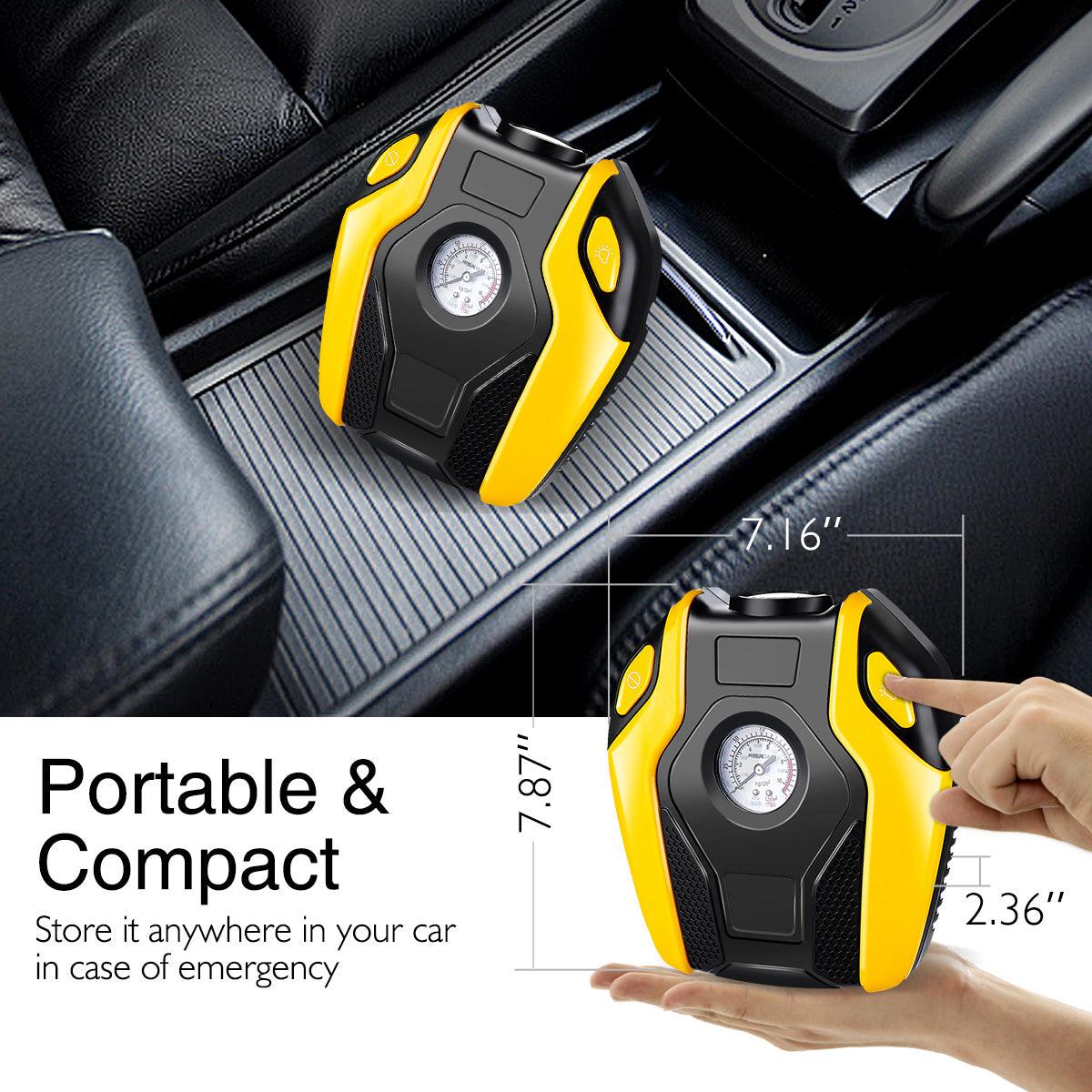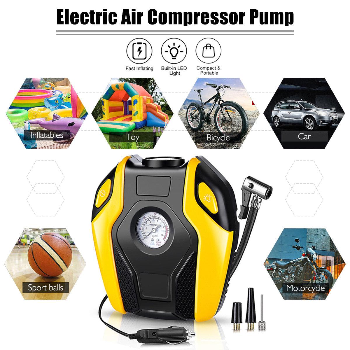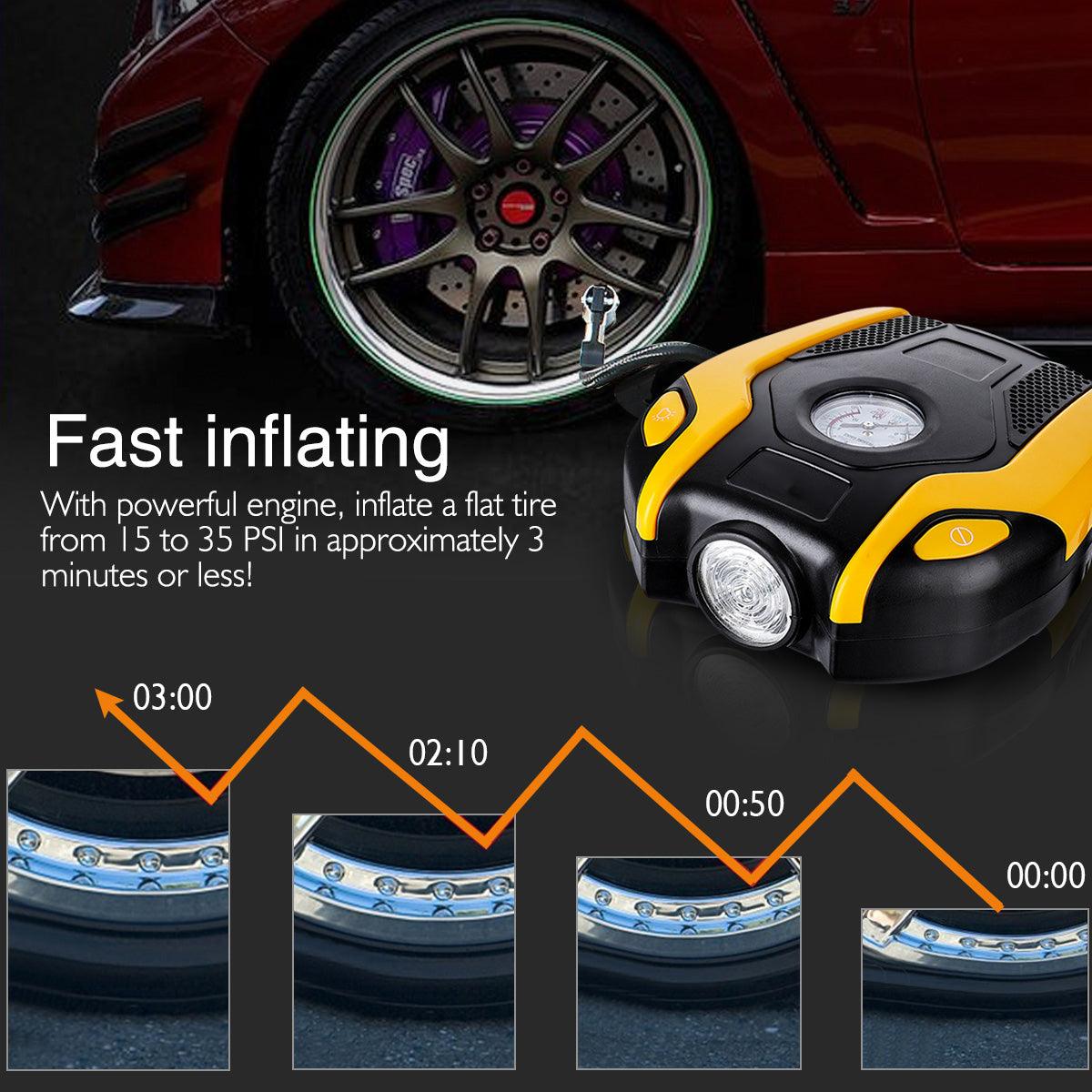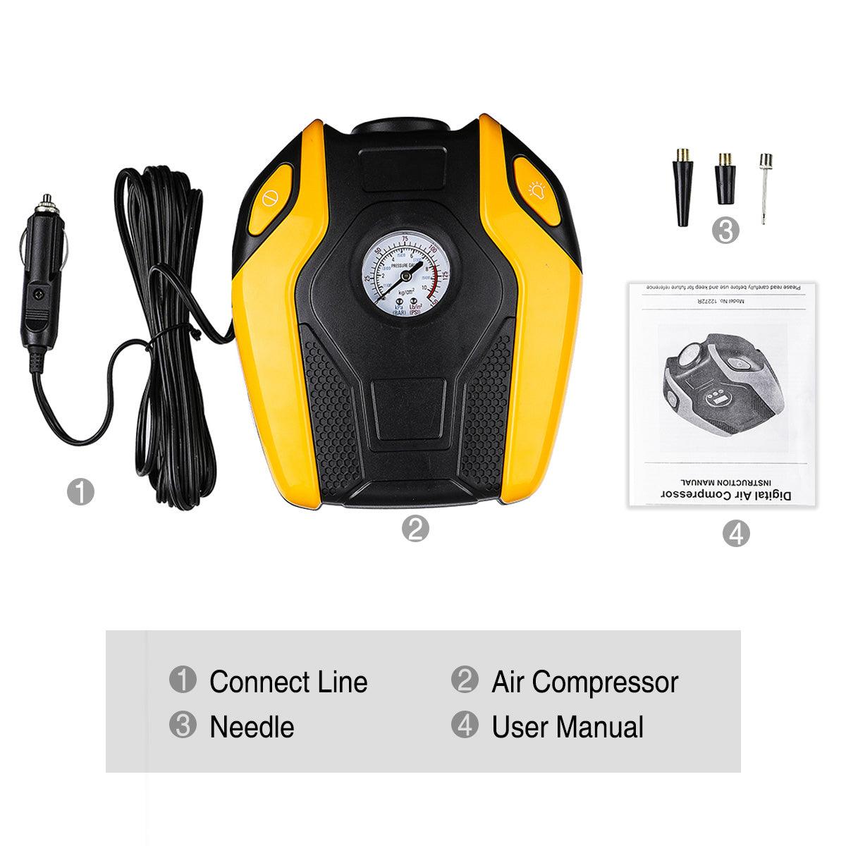 AUGIENB Portable Electric Air Compressor Pump,Tire Inflator with Gauge,LED Light and Adaptors,Universal for Car,Truck,Bicycle, Basketballs and Other Inflatables,ABS 12V 120W 150PS