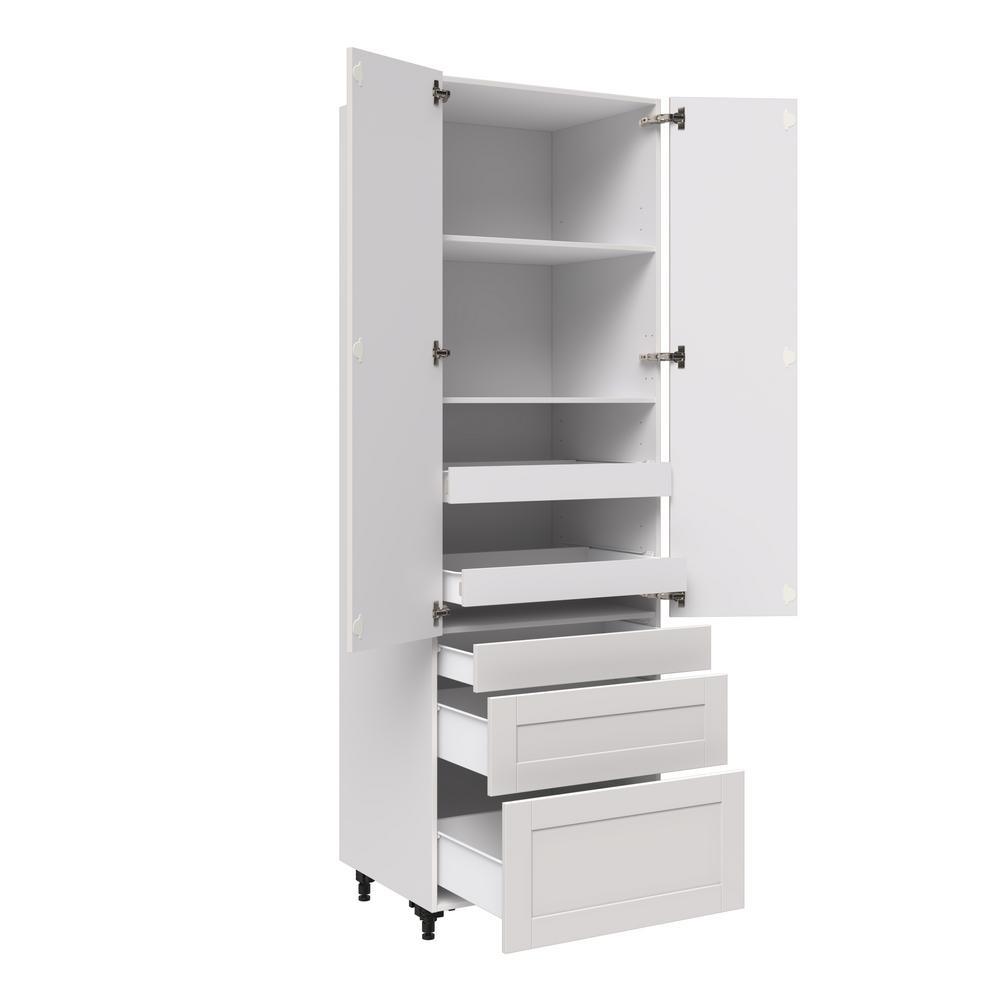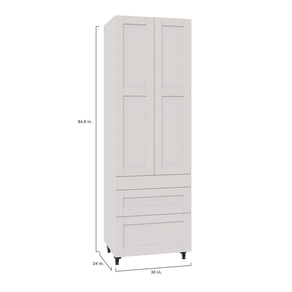 Shaker Assembled 30 in. x 94.5 in. x 24 in. Pantry Cabinet w/ 2-Inner Drawers & Three Pull Out Drawers in Vanilla White