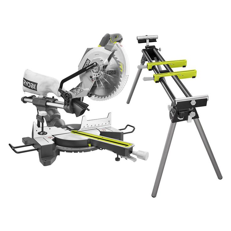 RYOBI introduces the 10 in. Sliding Miter Saw with LED and Miter Saw Stand with Tool-Less Height Adjustment. The heavy duty 15 Amp motor delivers up to 4,600 RPM for the power to make difficult cuts. It features a 1-1/4 in. dust port to help keep your work area clean. The 24-tooth Carbide-Tipped blade provides improved performance for fast, clean cuts and an LED Cutline Indicator for higher accuracy. The RYOBI Miter Saw Stand is ideal for any miter saw user. It features durable construction that can fit most miter saws and folds up for easy storage and portability while it supports your saw with a rugged steel frame to accommodate any project at home or on the job. Backed by the RYOBI 3-Year Manufacturer’s Warranty, the 10 in. Sliding Miter Saw with LED includes a 24-tooth Carbide Tipped Blade, table extensions, a blade wrench, a dust bag, a work clamp, the Miter Saw QuickSTAND, and an operator’s manual.