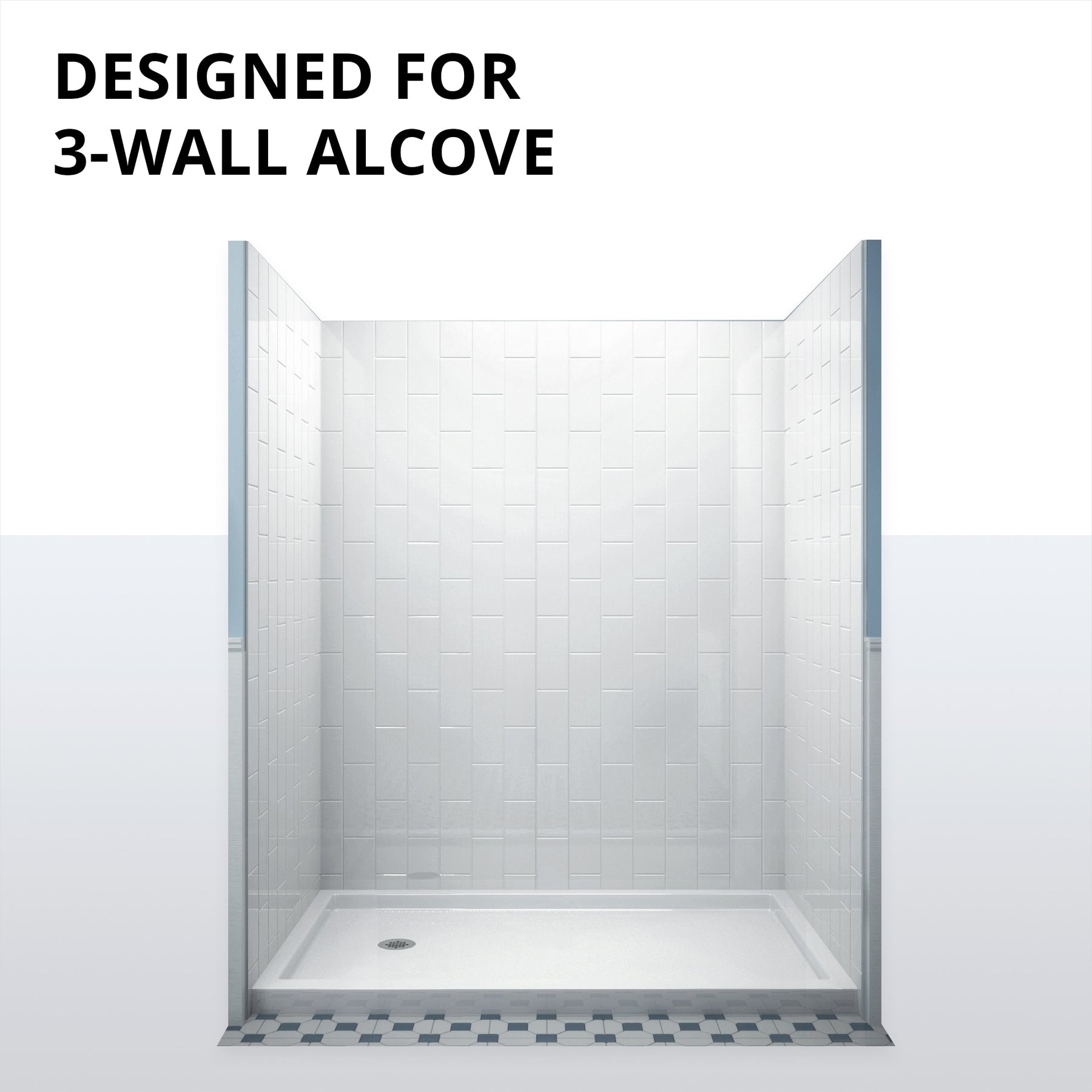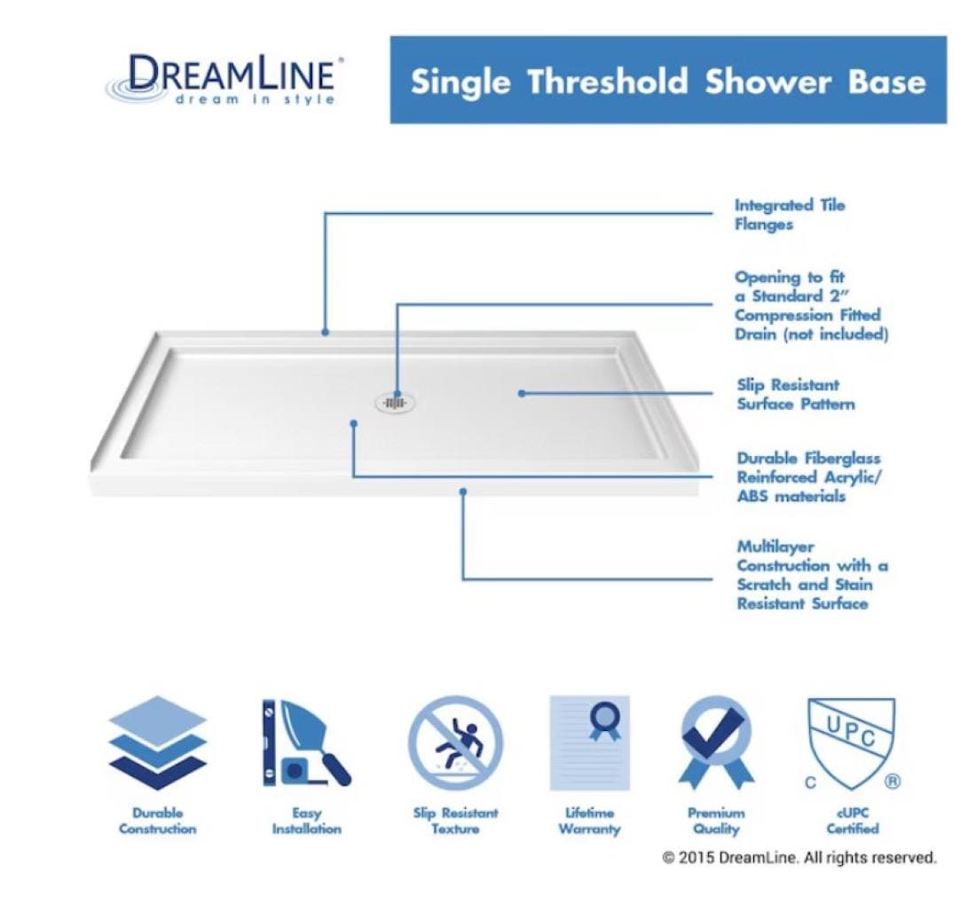 Single-Threshold Base: Fits 3-wall alcove installations for streamlined remodels