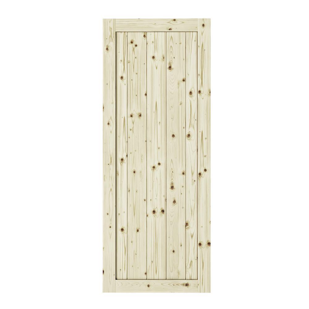 Slender vertical slats and handsome framing come together in this iconic Rustic style door, made to be the finishing touch on overhead tracks, in front of guest rooms, and more. Rich wood graining and included knots add a rustic element that can be easily painted or stained, as preferred. Simply add the hardware of your choice and enjoy a durable door for many years to come.