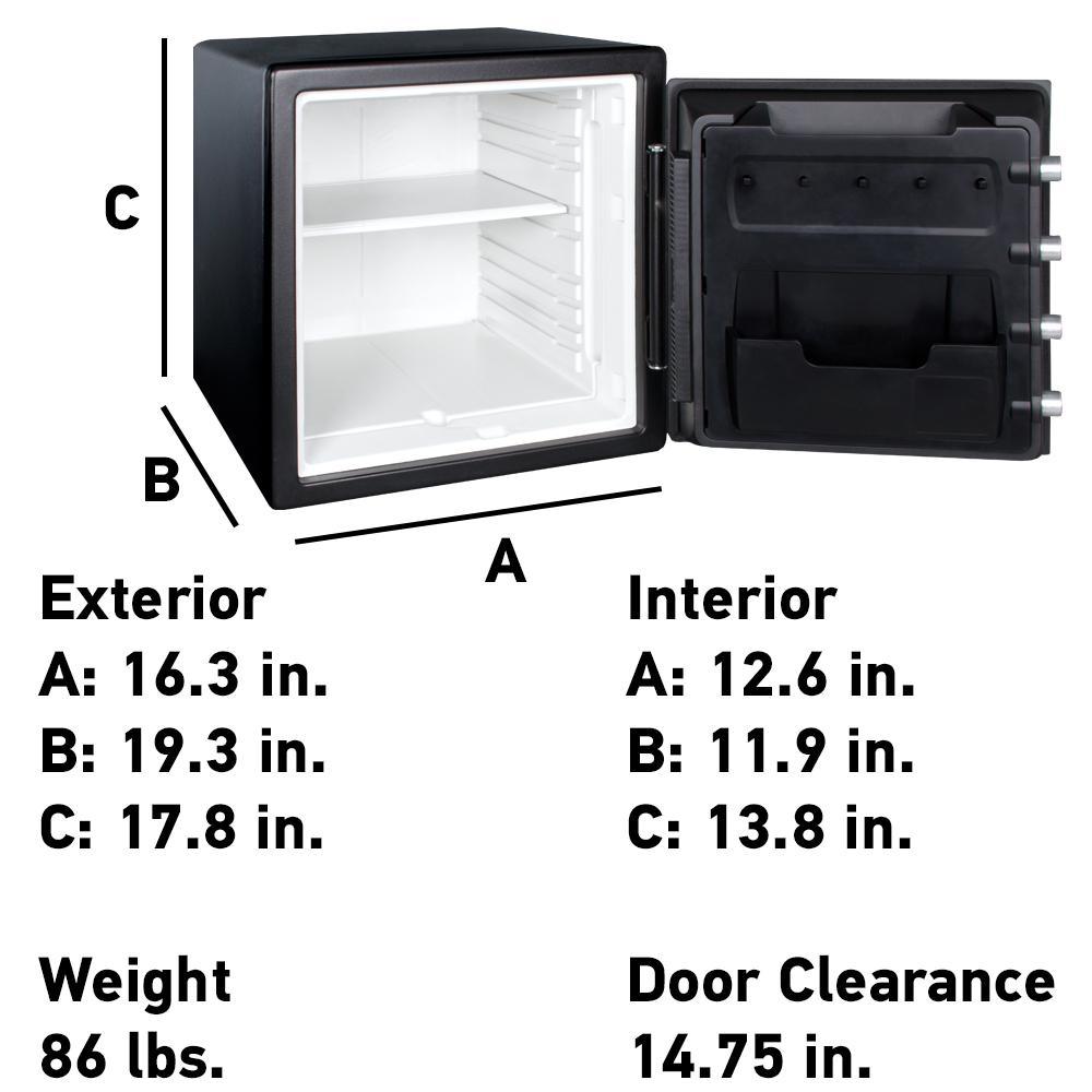 • Exterior: 16.3 in. W x 19.3 in. D x 17.8 in. H; door requires 14.75 in. of clearance to fully open; Interior: 12.6 in. W x 11.9 in. D x 13.8 in. H; large 1.23 cubic foot capacity; weighs 86 pounds